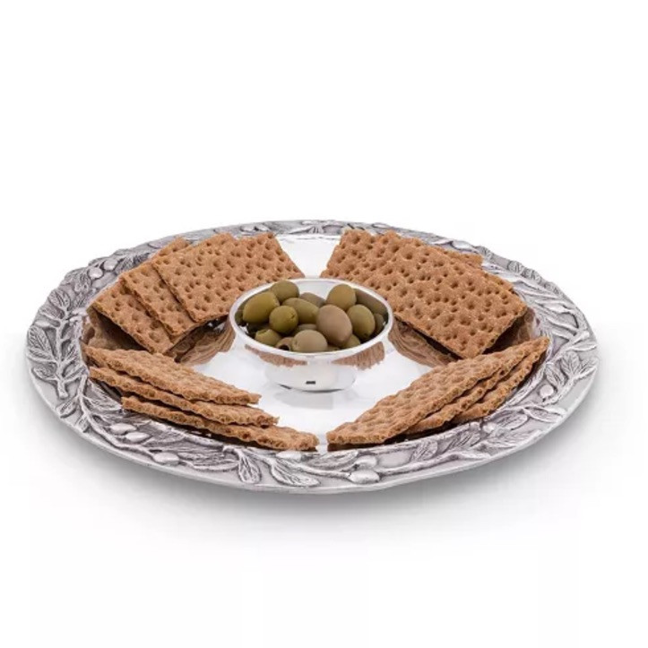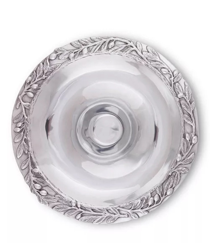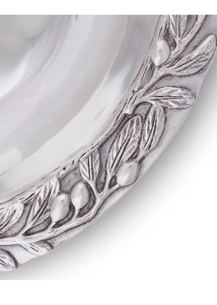 The Arthur Court Sand-Cast Olive Pattern Aluminum Large Chip and Dip Tray is a collectible metalware piece that showcases intricate detailing and craftsmanship. Made from aluminum, this tray features a unique olive pattern that adds elegance to any serving setting. With a generous size, it is designed to hold both chips and dip, making it a versatile and functional piece for entertaining guests. The Arthur Court brand is known for its quality and timeless designs, making this tray a standout addition to any collection or serving arrangement.