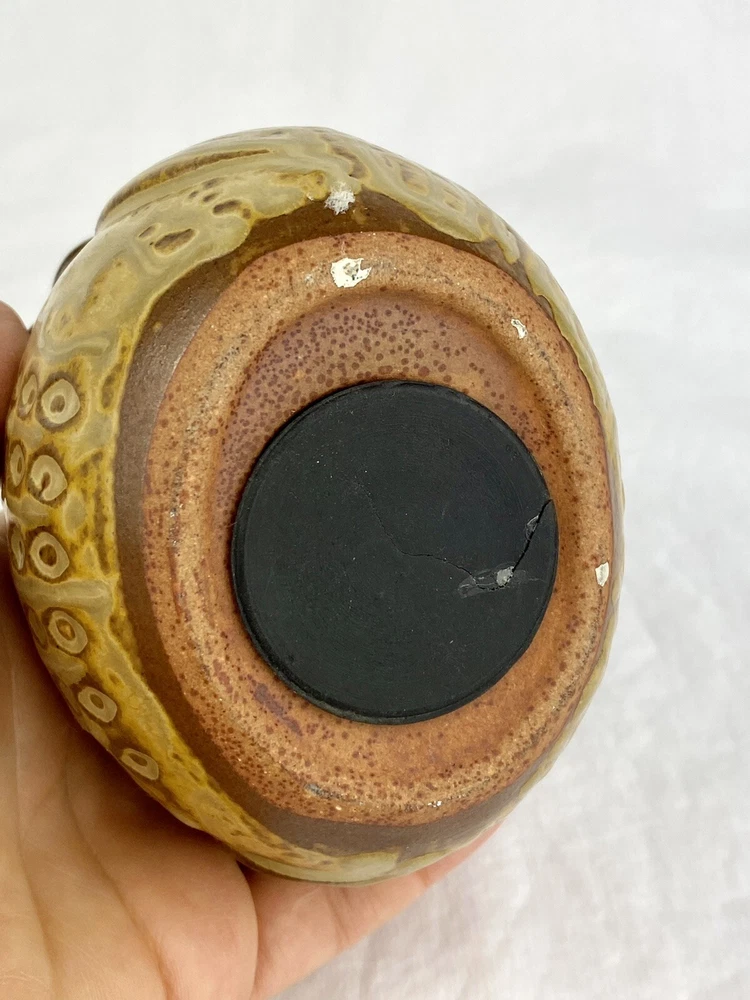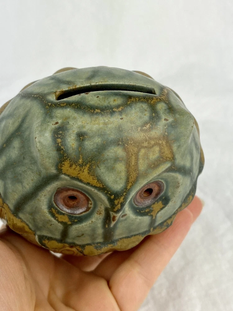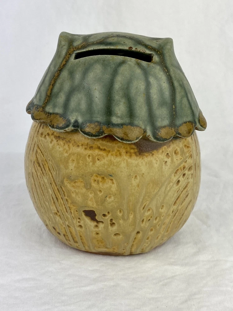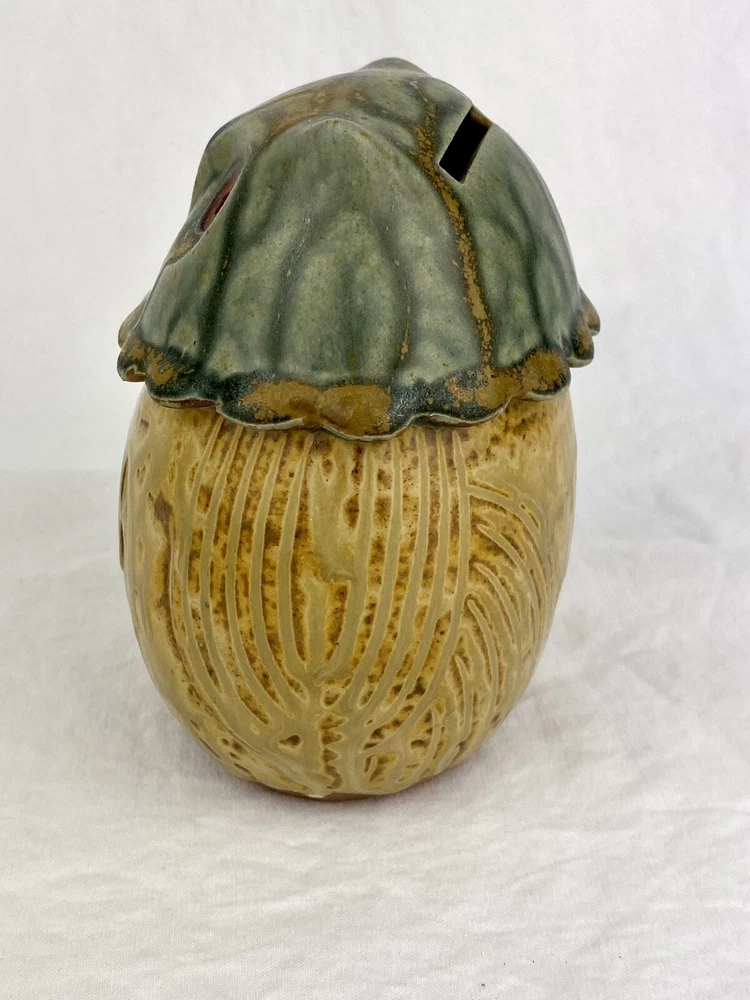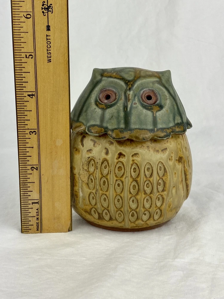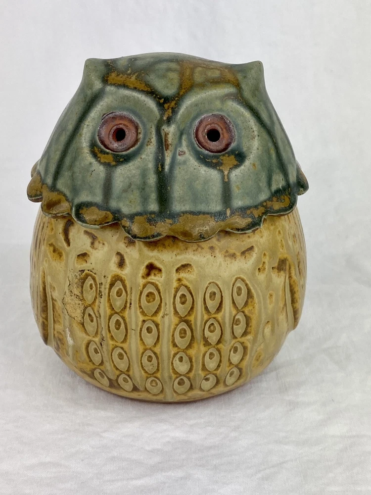 Artisan Owl Ceramic Studio Pottery Look Coin Piggy Bank Holder Blue Brown Glaze. No chips or cracks. In great condition. The plug has been repaired. See photos as they are part of the description. Thank you for visiting!