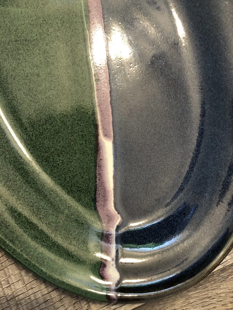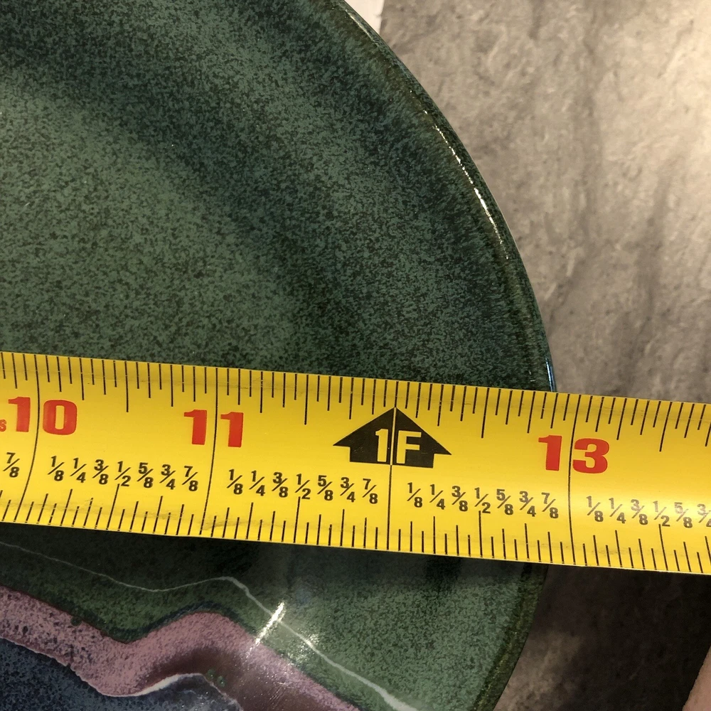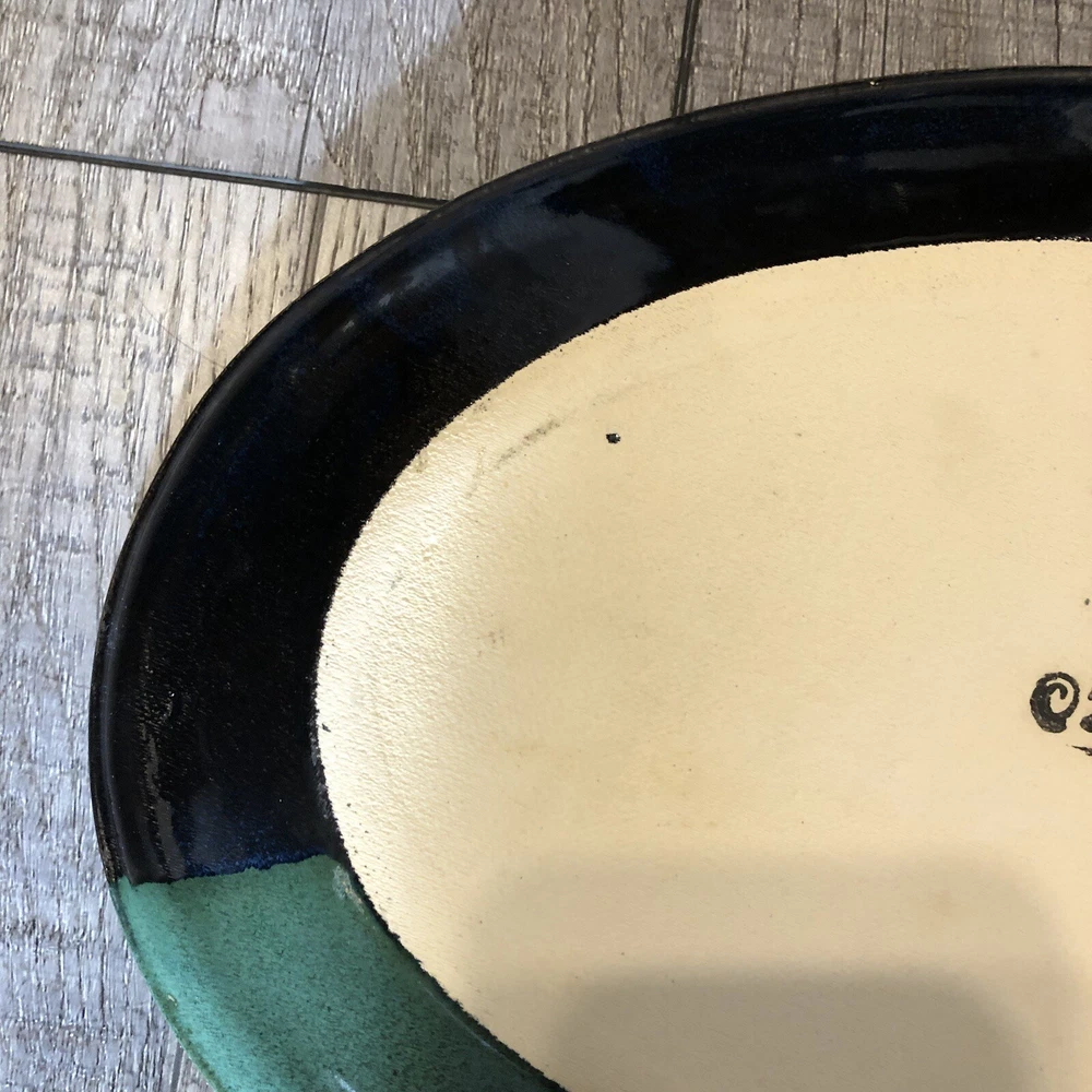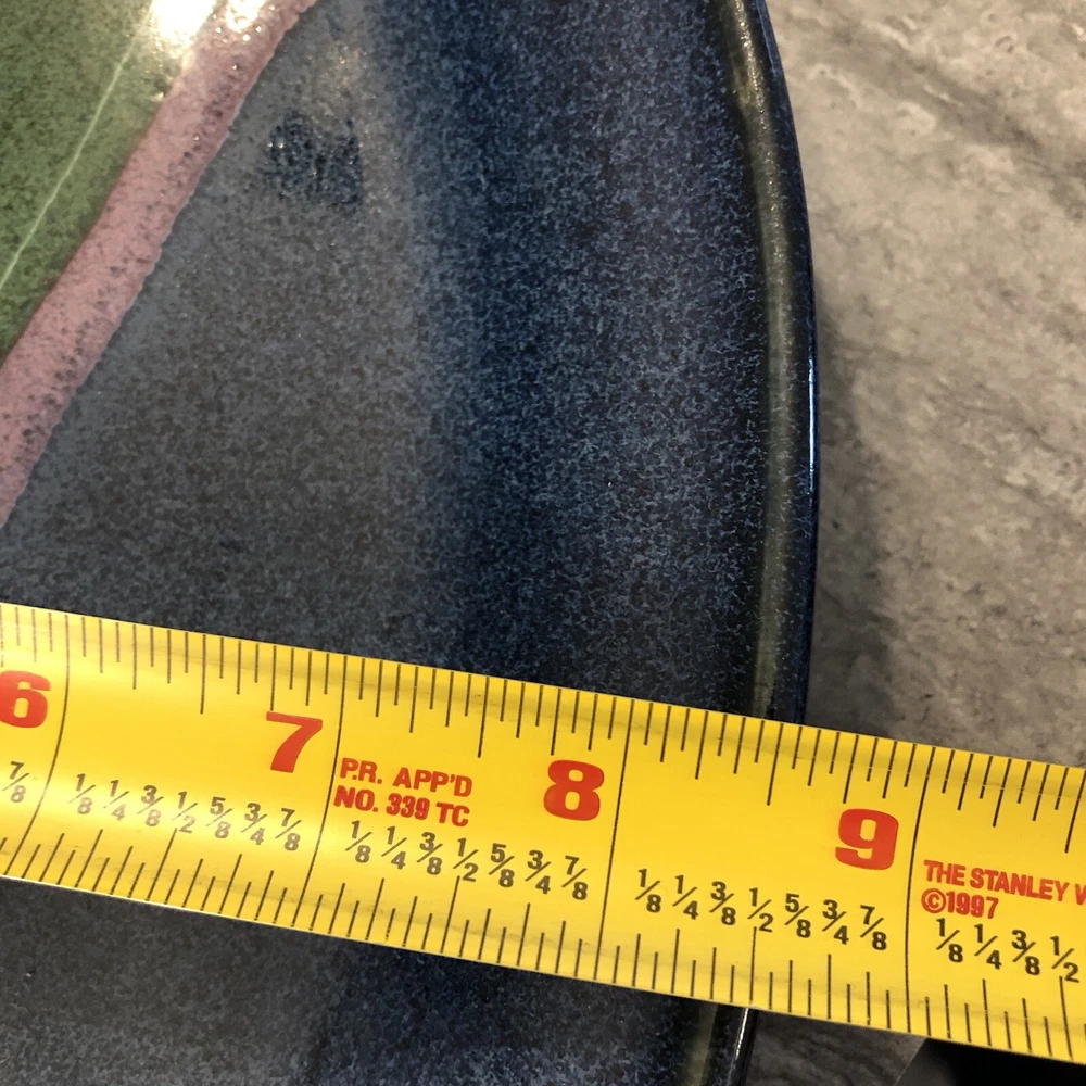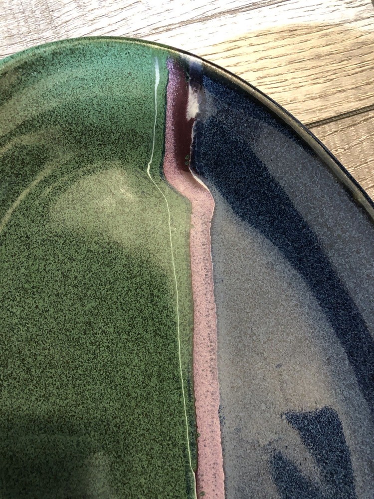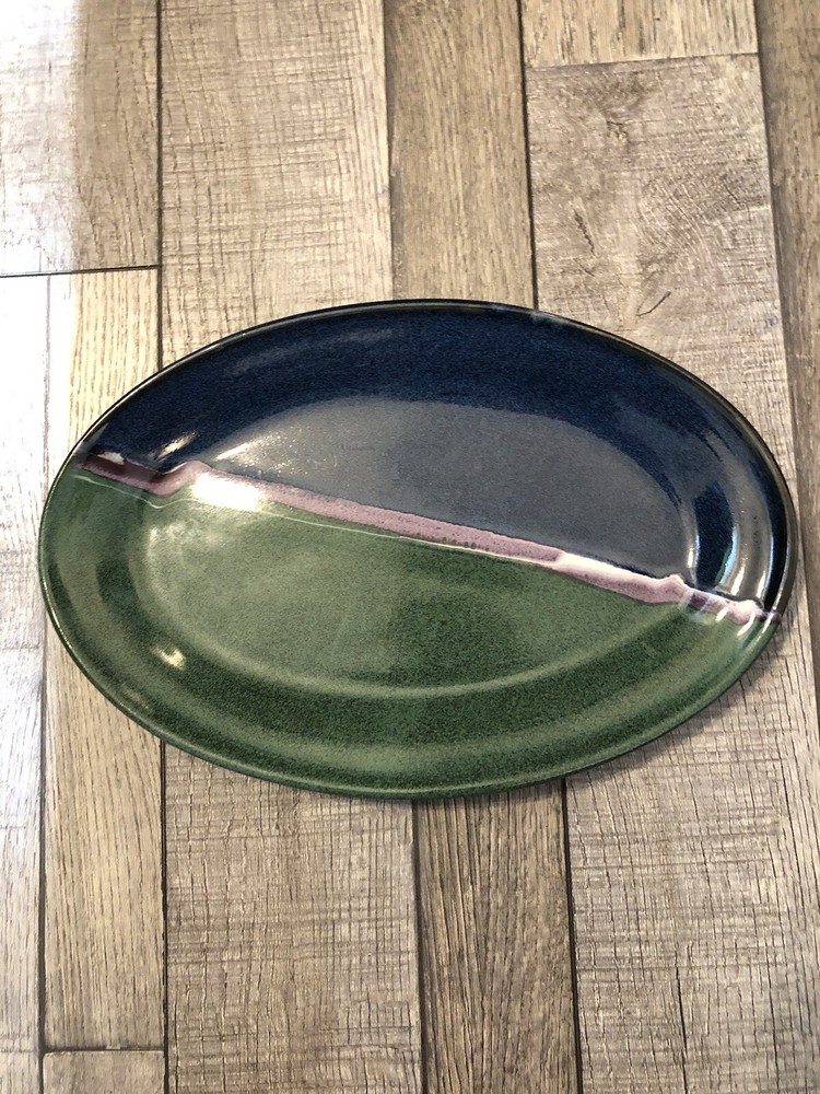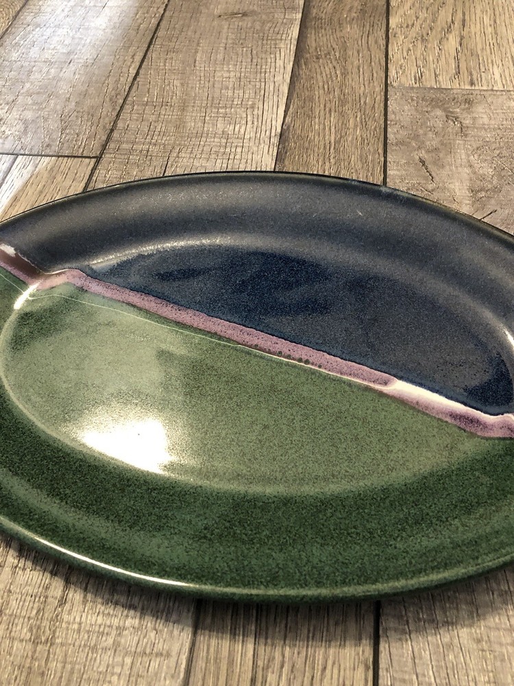 Artist Signed Glazed Pottery Studio Art Plate / Platter Multicolor 2010 8.5” X 13” BEAUTIFUL COLORS / VERY NICE! River style design down center ***FLAW - some small chips on underside*** SEE PICS