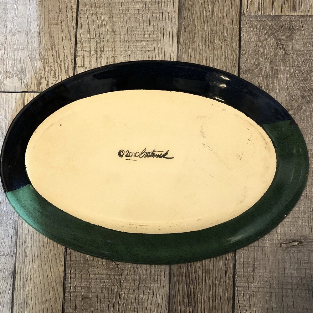 Artist Signed Glazed Pottery Studio Art Plate / Platter Multicolor 2010 8.5” X 13” BEAUTIFUL COLORS / VERY NICE! River style design down center ***FLAW - some small chips on underside*** SEE PICS...