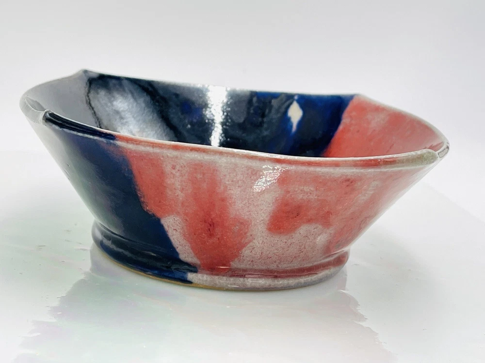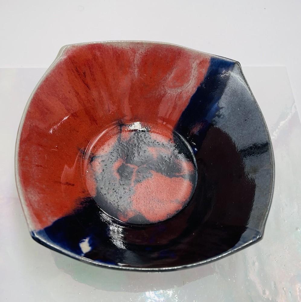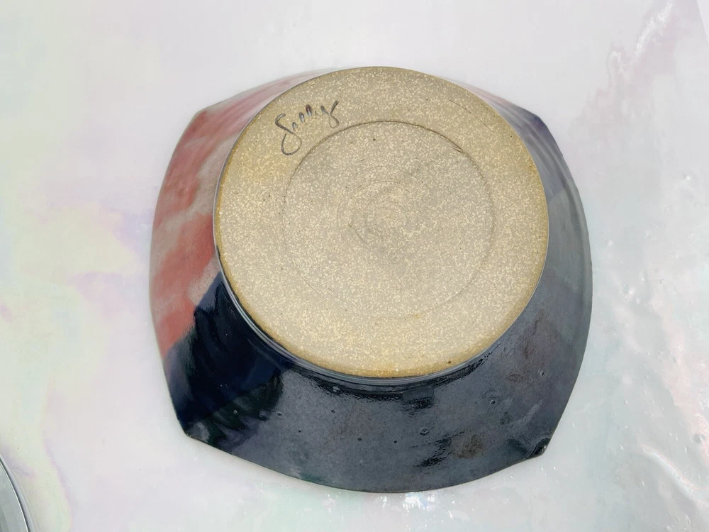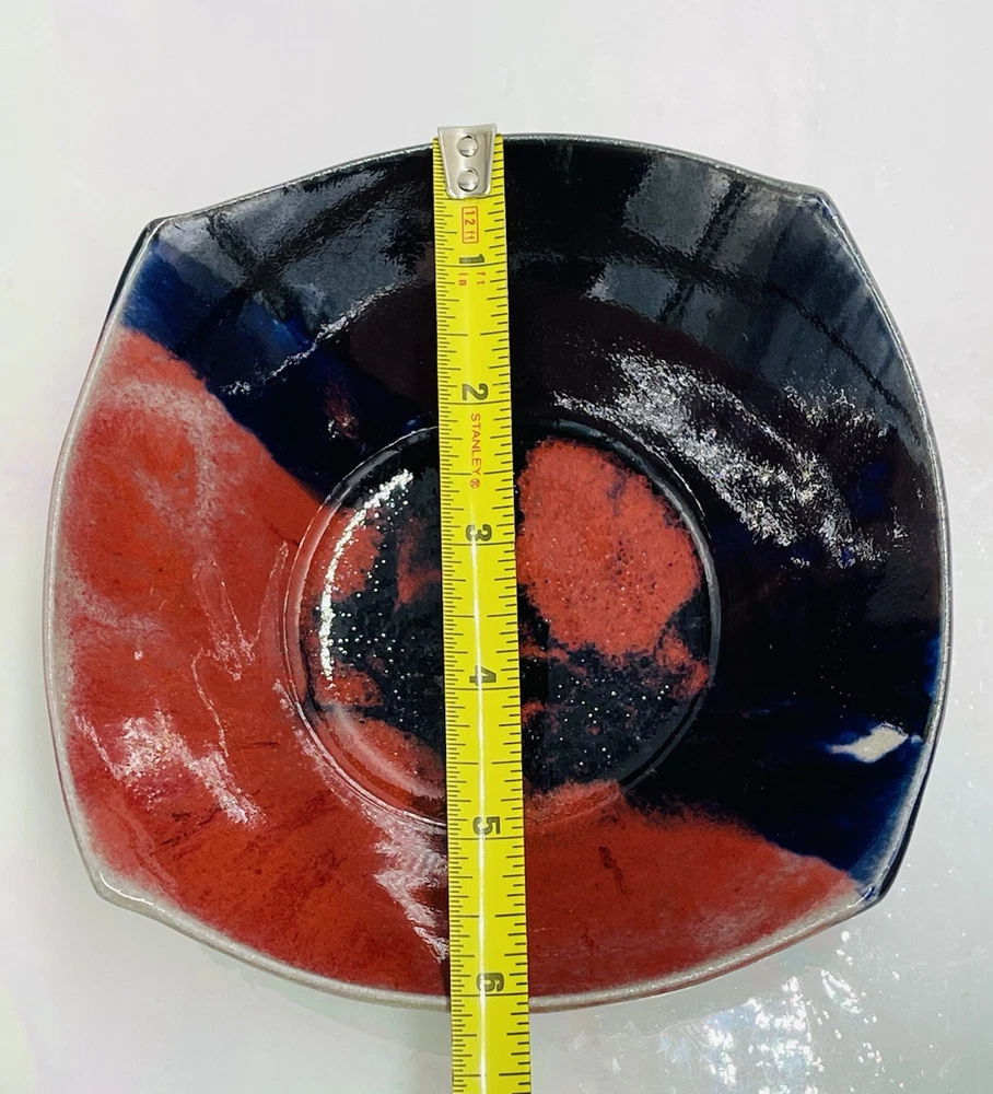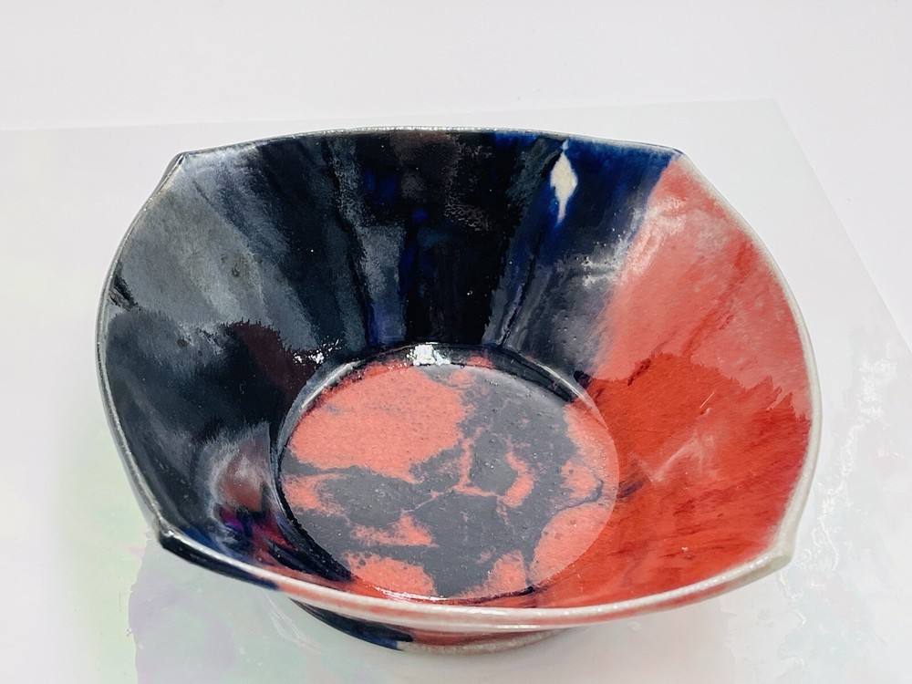 Artist Signed Studio Art Pottery Color Block Red Black Square Bowl Glazed 6x2"...