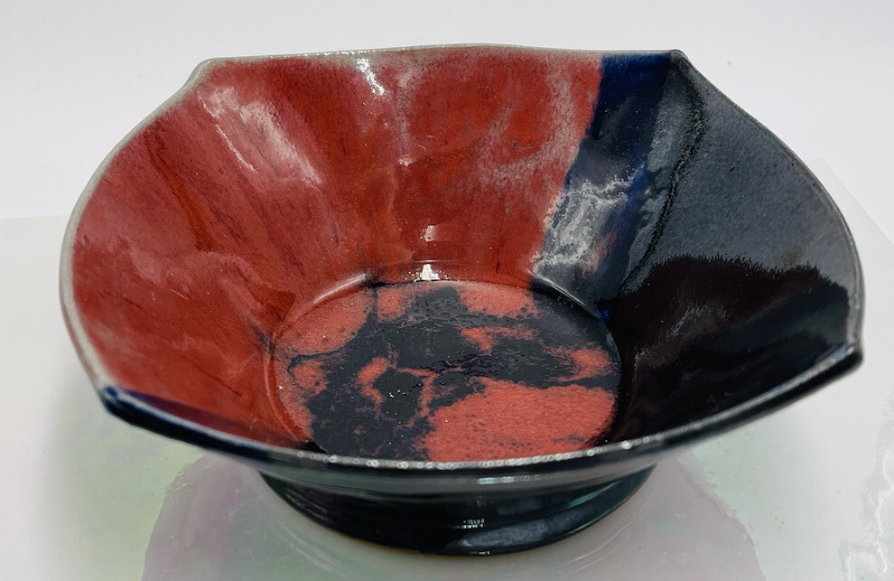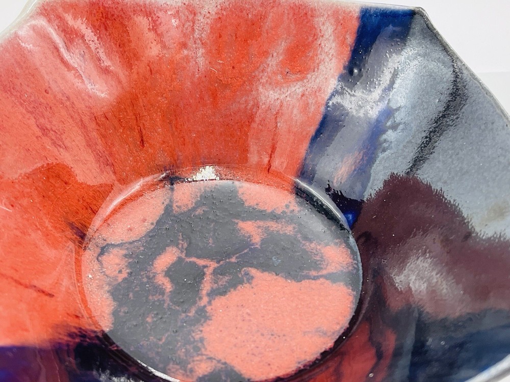Artist Signed Studio Art Pottery Color Block Red Black Square Bowl Glazed 6x2"
