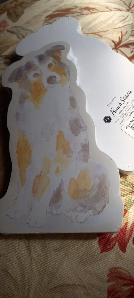 Lot of 2 adorable Australian Shepard Shaped dog Notepad. This is so cute to use for Scrap Booking or for a gift for someone who has one of these cute dogs. They are both new and each come with 120 pages. Thanks for stopping by. Have a wonderful week and if you have any questions please don't hesitate to ask.