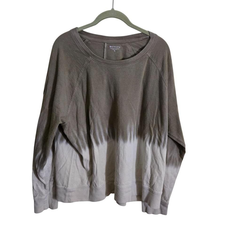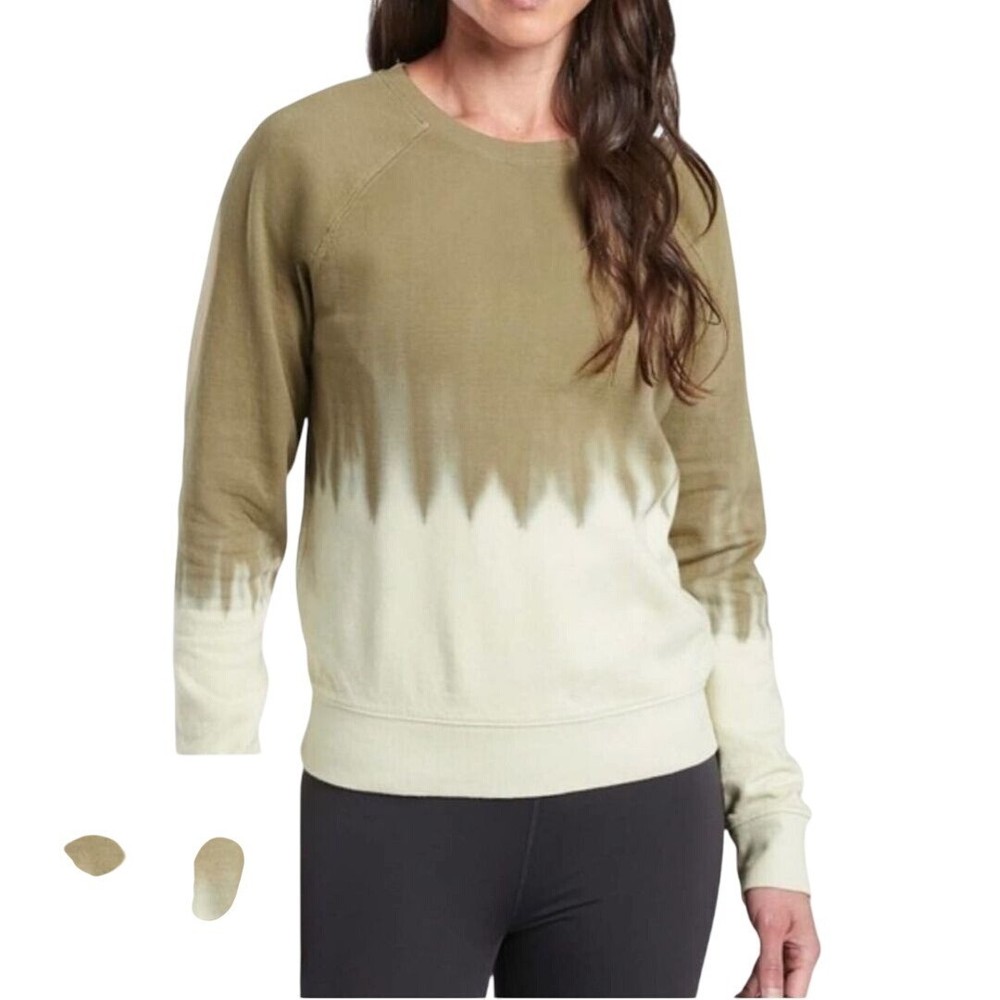 This Athleta Sundown Dip Dye Sweatshirt in Shadow Olive is perfect for casual spring days. It offers a trendy dip dye design and comfortable fit, ideal for layering or wearing on its own. Retail $78 • Trendy dip dye design • Comfortable fit • Perfect for casual wear • Ideal for layering • Shadow Olive color Pit to pit 27" Shoulder to hem 26" Features: • Soft Dip Dye Trending Olive Sweatshirt Size: Womens XL Condition: Pre-Owned Good