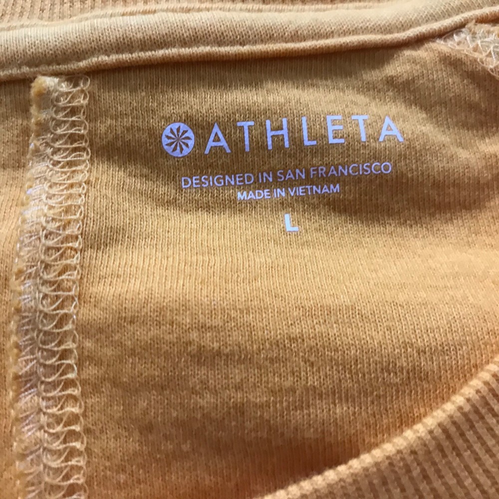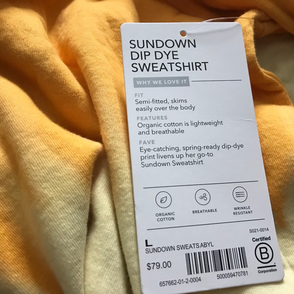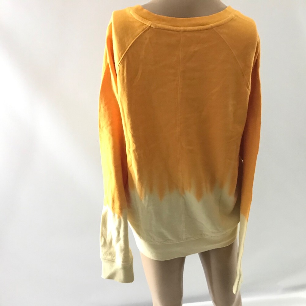 Athleta Sundown Dip Dye Sweatshirt Size L Semi Fitted Yellow Pullover Longsleeve F88 EP Has stain on it.See pic 8,9