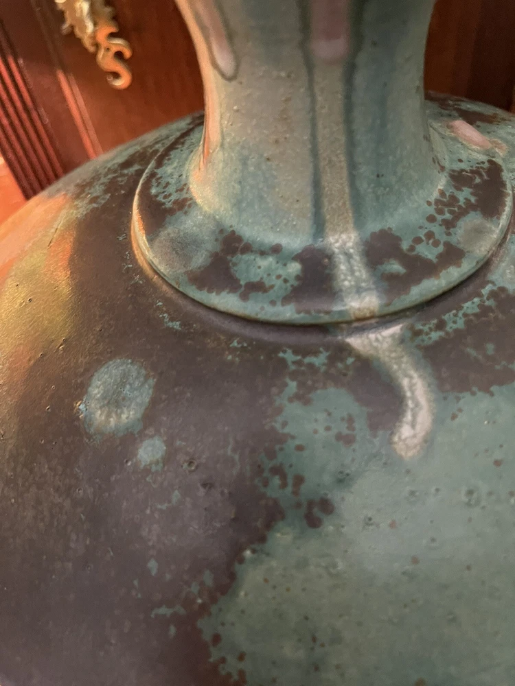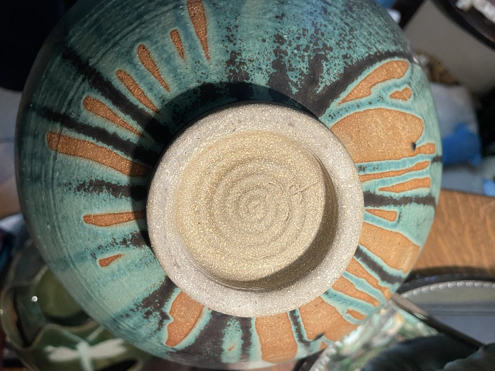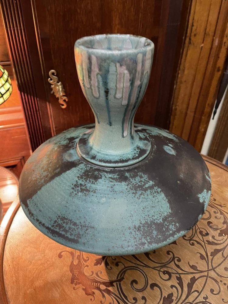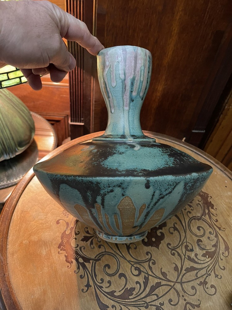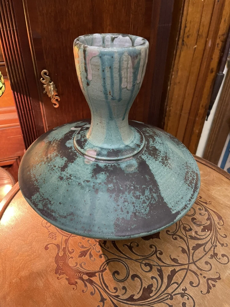It was sold to me as by this artist years ago its not clearly marked or anything scribble if anything,but i didnt care i loved the form and the glazes . Large heavy impressive...