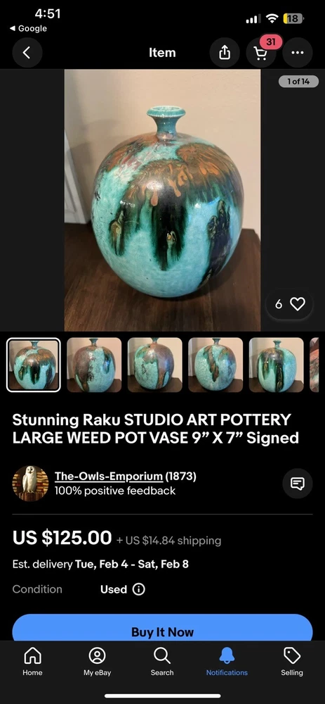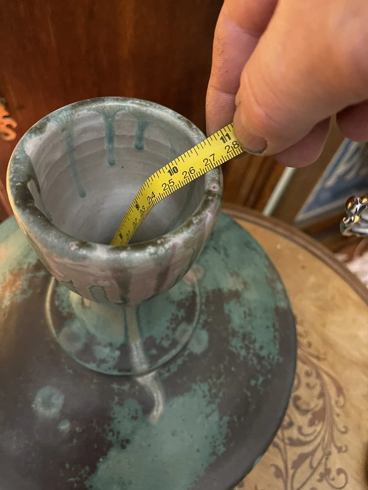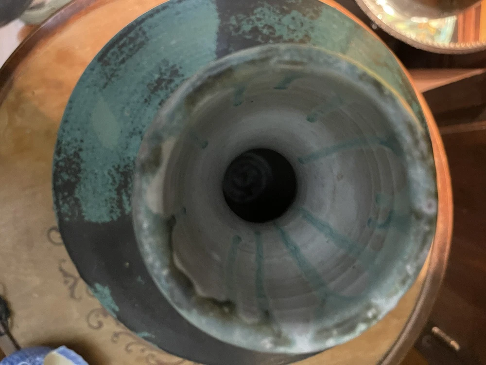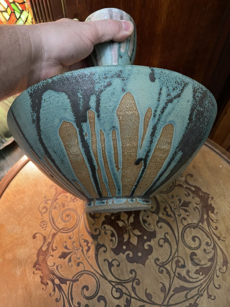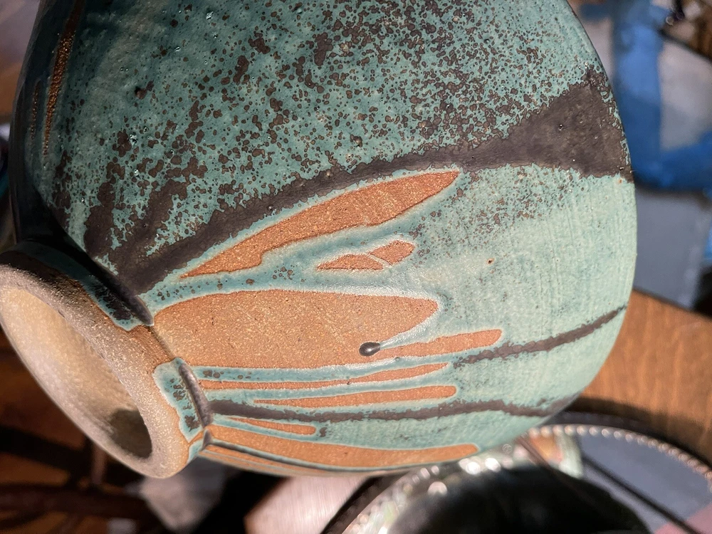 It was sold to me as by this artist years ago its not clearly marked or anything scribble if anything,but i didnt care i loved the form and the glazes . Large heavy impressive...