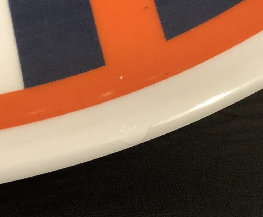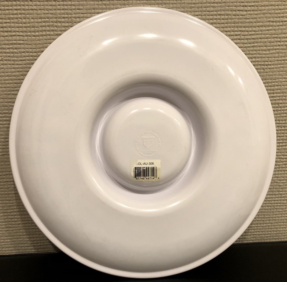Hard plastic tray is in very good minimally used condition. Small superficial chip on rim and minor scuffs/smudges from use. Otherwise, no holes, cracks or other chips. Measures 12" in diameter. Dishwasher safe, top shelf only. Not recommended for microwave use. PLEASE READ CAREFULLY Payment is due within 48 hours unless prior arrangements have been made between the seller and buyer. If no payment is received within this time-frame, the item(s) will be subject to cancellation and relistment. As a result, eBay will be notified of the cancellation due to nonpayment. I would like to avoid all this, so please pay promptly. Shipping is within 3 business days. Shipping outside the U.S. to pre-designated locations only and via eBay's Global Shipping Program. Your address must match the eBay address. Not responsible for uninsured items or damage during shipping. I will combine shipping and handling for multiple item purchases, unless the items must be shipped separately. Shipping service used is at seller's discretion (USPS Economy, First Class, Media, Parcel, or Priority Mail; UPS or FedEx) with delivery confirmation. If electing a specific shipping service or an upgrade, please e-mail me to finalize total shipping prior to making payment. See Shipping D etails . If you purchase a "Used" or "Preowned" or an otherwise not "New" item, you agree that the item is considered "As Is" and there is no return or refund on the item unless the item was misrepresented in the description (details or other information in the listing did not reasonably match the actual item), or otherwise specified. Returns on a "New" item only if the item is defective or was misrepresented in the description. P lease understand that a "Used" or "Preowned" item is not "New" and may have unique and peculiar normal wear issues from usage and handling (such as scuffs, smudges, stains, holes, tears , frays, marks, missing parts or other damage). I n addition, keep in mind that photographs do not always capture the exact color, hue, shade or texture of an item due to lighting conditions such as glare, and individual camera capabilities. Lastly, I make every effort to identify and honestly and accurately describe the condition of an item to the best of my ability, to include any specific details (good or bad) that I am aware of. I As such, I do not deliberately omit, embellish or otherwise mislead as to the condition of an item. But, I am human and any missed discrepancies are not intentional. Therefore, please read the description and view the pictures carefully, research any item, and ask questions to ensure the item meets your needs prior to purchasing the item. I have been buying and selling on eBay for 18 years and have a 100% feedback rating. Why? Because I'm customer service-oriented. I strive to be courteous, fair, and honest and would like the same consideration. I understand that communication is the key to a good transaction and I realize that unexpected things come up. So please contact me if you have any concerns before or after the sale. Please allow me the opportunity to resolve any issues to the satisfaction of both parties before feedback is left on either end or a return request is initiated. Please see my eBay store for other great items. Thank you.