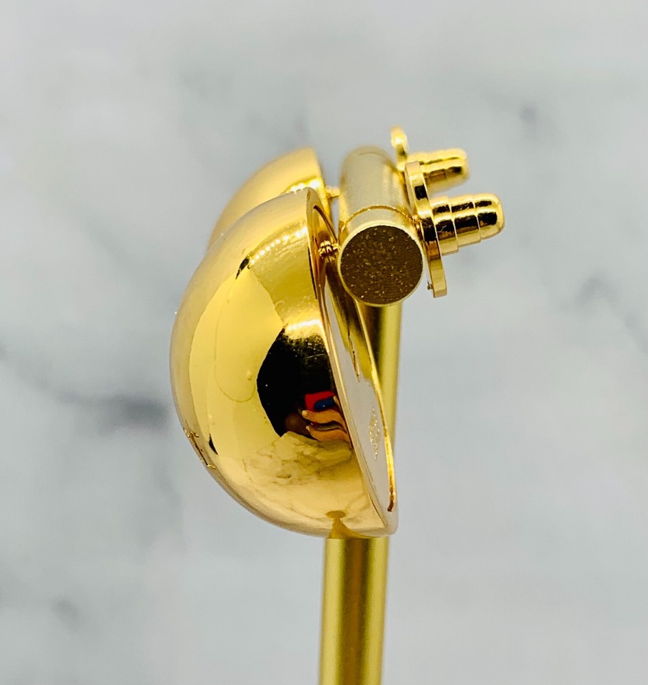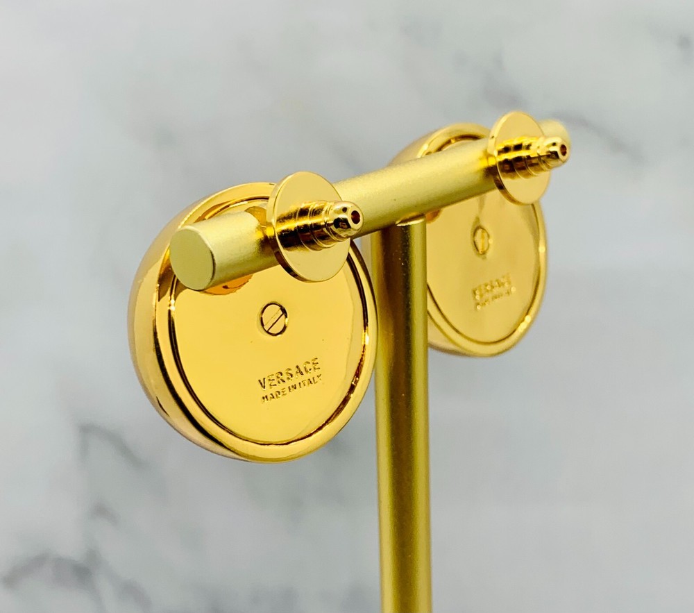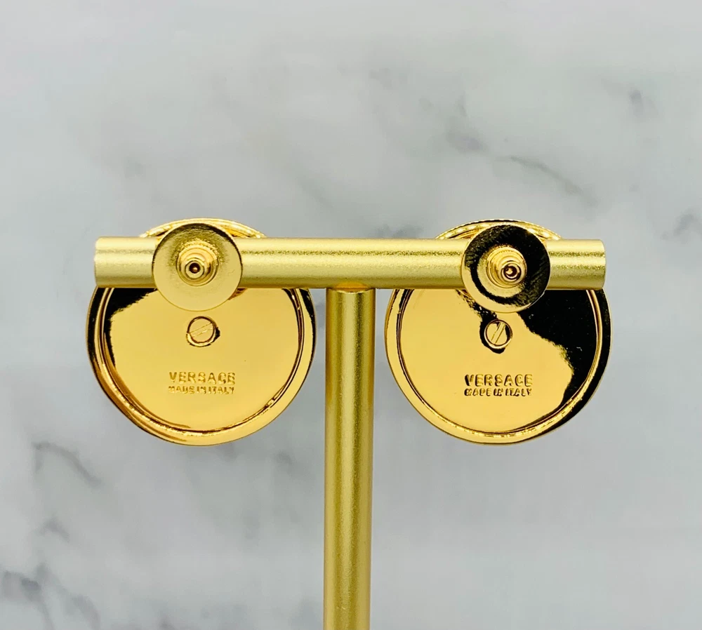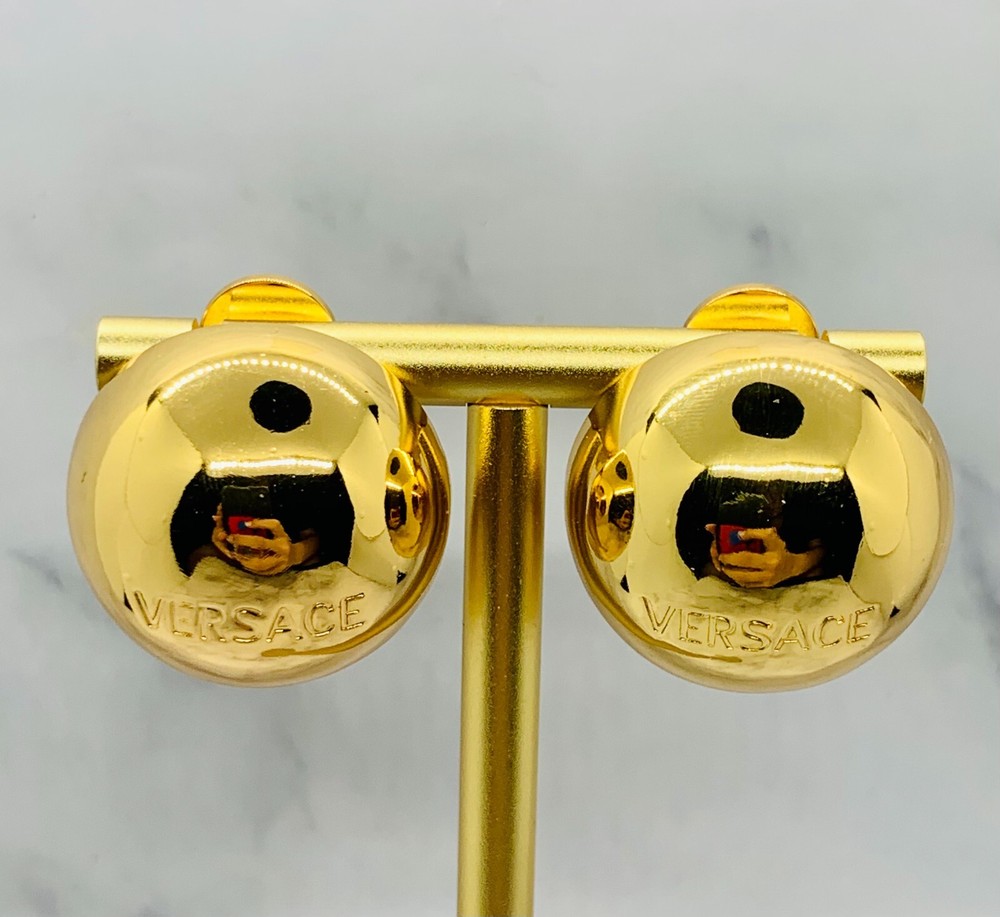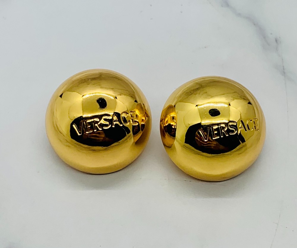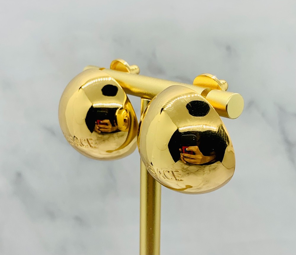 These Versace dome earrings are absolutely stunning! The gold tone still shines beautifully, and the 1.15" size makes a bold yet elegant statement. They have a nice weight at 1.3 oz, feeling substantial without being uncomfortable. For pre-owned, they're in great condition—just give them a gentle polish to keep them looking luxurious. Perfect for adding a touch of high-end glam to any outfit!