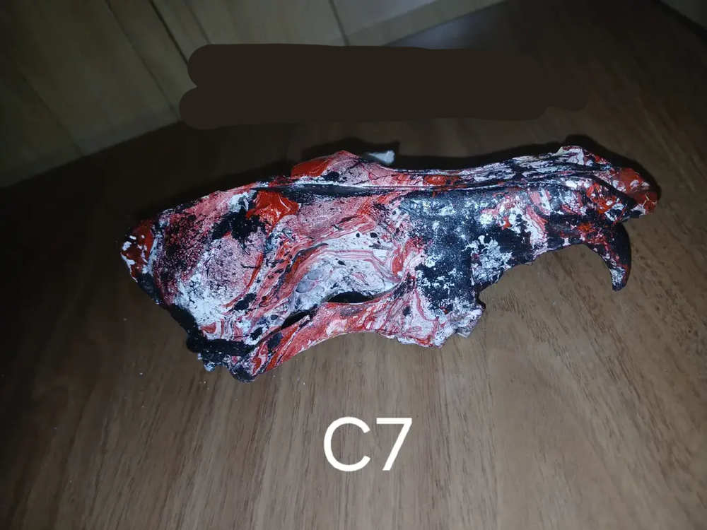 All skulls were found so as to remain kill free. They were then boiled, cleaned, painted base white, hydrodipped, and sealed...