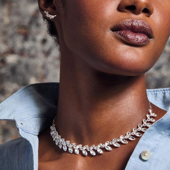 Avon Studio 1886 Sparkling Leaves Choker Necklace. Brand new in box. Make a sparkling statement in this beautiful choker, designed with clear leaf-shaped stones set in silvertone. FEATURES • 14 ½” L with 3 ½” extender • Lobster claw clasp