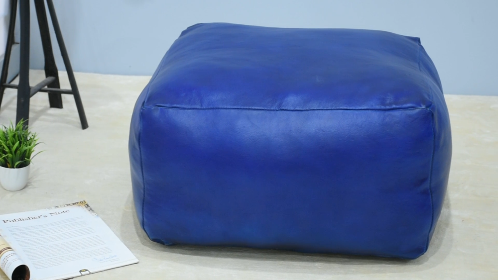 Product Description: Experience simplicity at its finest with this meticulously crafted handmade leather pouf, a superb enhancement for your home. Available in a sophisticated yet understated blue hue, it exudes timeless elegance. Filled with recycled cotton, it not only adds a touch of eco-consciousness but also ensures comfort. Truly, it is the quintessential addition to your home. FEATURES : • Material- Buffalo Leather • Pattern- Solid • Shape- Square • Color- Blue • Constructions- Handmade • Stuffed- Yes • Storage- Yes • Filled- Yes • Item Condition- New • Usage- Indoor • Assembly- No • Eco-Friendly- Yes • Cleaning Method- Wipe with a Dry Cotton cloth • Area of Usage- Living Room, Study Room, Guest Room, Patio, Office, Kids Room Bullet Point 1: [HANDMADE] Indulge in the artistry of handmade craftsmanship with our exquisite seating pouf. Each piece is meticulously crafted by skilled artisans, who pour their passion and expertise into every stitch and detail. With expertise in their craftsmanship, the artisan stitched the poufs so well that they are highly durable and resistant to damage. Bullet Point 2: [MATERIAL] High-quality genuine buffalo leather used which is responsibly sourced and expertly processed to ensure a smooth texture and odor-free finish. The leather is colored through an eco-friendly process, ensuring it remains fade and stain-resistant while upholding environmental responsibility. Bullet Point 3: [COMFORT] The pouf is filled with perfectly compressed recycled cotton, maintaining its shape and resilience even after extensive use, ensuring lasting comfort and durability. This pouf's shape and design are scientifically crafted to provide optimal comfort and support, ensuring a delightful seating experience.Bullet Point 4: [SHAPE] Our square seating pouf, is expertly crafted to promote ideal seating posture and deliver an exceptional seating experience. The pouf design is meticulously crafted to achieve a compact and space saver yet comfortable appearance, blending style with cozy functionality. Bullet Point 5: [USAGE] Versatile and portable, our pouf offers additional seating options with ease. Whether in the living room, study, guest room, patio, or office, its adaptable design ensures comfort anywhere. Poufs offer multifunctional versatility beyond just seating; they can serve as footrests, side tables, coffee tables, and more. Bullet Point 6: [CLEANING] Crafted from genuine leather, the pouf requires careful maintenance to avoid water contact. Nevertheless, it's effortless to clean and upkeep; a simple wipe with a dry cloth is all it takes to maintain its pristine condition. Bullet Point 7: [SERVICE] Exceptional customer support is our hallmark. Enjoy complimentary shipping, effortless returns, and responsive assistance as our top priorities. Your satisfaction is our commitment. Bullet Point 8: [BRAND] BBH Homes LLC is dedicated to crafting and offering some of the finest quality handmade home decor products. Our range of products is meticulously handcrafted and eco-friendly, adhering to the highest ethical standards in the sourcing of raw materials. Our primary objective is to deliver unparalleled quality to our valued customers, ensuring their utmost satisfaction with every purchase. We take great pride in our commitment to prioritizing customer service above all else and we strive to consistently exceed our customers' expectations with every interaction. [CONSTRUCTION] This pouf is meticulously crafted by exceptionally skilled artisans who have dedicated their entire lives honing their expertise in this craft. The pivotal aspect of this pouf lies in the sourcing of materials, particularly the buffalo leather used in this instance. The leather procurement process adheres strictly to ethical standards, ensuring responsible and sustainable practices that are environmentally sound. Following this, the layout of the pouf is meticulously hand-stitched by our skilled artisans, ensuring durability for a lifetime. Subsequently, recycled cotton is densely packed into it, ensuring the poufs maintain their form without compression, even after years of use. After filling the pouf, the remaining opening is stitched closed, completing the assembly process with precision. The final touch involves polishing the poufs, enhancing their appearance to a mesmerizing level, before they are carefully packed and prepared for shipment. [MATERIAL] The pouf is crafted from genuine buffalo leather sourced from a trusted and authentic eco-friendly and environmentally sustainable source. Ethical practices are employed throughout the sourcing and procurement process. We procure and process only the finest, genuine leather using state-of-the-art scientific techniques, meticulously eliminating any odors and achieving a smooth, luxurious texture. Quality control is maintained at every stage of leather processing to prevent any discrepancies. [USAGE & UTILITY] Poufs are renowned as versatile furniture and home decor items, owing to their compact size and effortless mobility. They not only offer additional seating options at home or in the office but also blend seamlessly with your existing interior decor. In addition to their durability, poufs are exceptionally comfortable for extended sitting periods, scientifically designed to ensure proper seating posture. [STAIN RESISTANT] Crafted from genuine leather and employing state-of-the-art processing techniques, this pouf is enhanced with eco-friendly ingredients in its polishing. Its remarkable stain-resistant properties make maintenance and cleaning effortless and straightforward, ensuring lasting beauty and ease of care. [CARE INSTRUCTIONS] While the pouf boasts easy-care and maintenance-free qualities, it's prudent to prevent potential damage. Avoid exposing the product to water or wet objects, and refrain from placing it in damp areas. Steer clear of using sharp objects that could scratch the leather. Occasionally, a mil