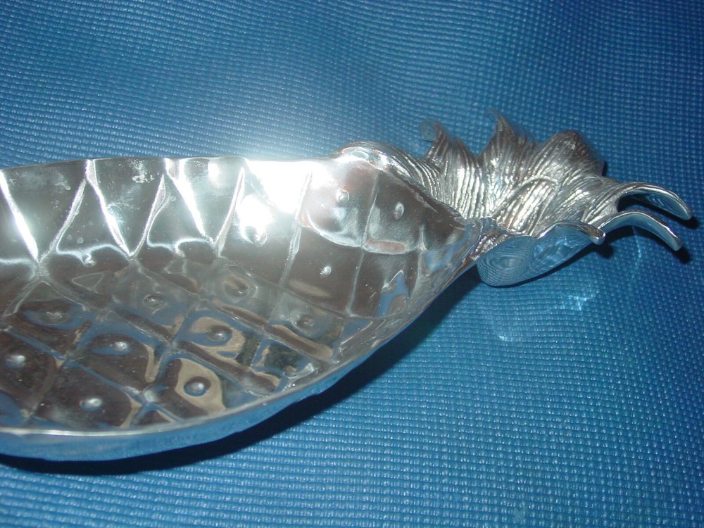 Up for auction this BEATRIZ BALL LARGE PINEAPLE BOWL (WHAT YOU SEE IS WHAT YOU GET) It is 16" long 8" widest000 2 1/4" tallest .It is in clean excellent clean used condition with few flaws Flat rate shipping $18.00 to home address to 48 contiguous state NO APO OR PO BOX .Look for my other auctions with more ITEMS that could be to your interest and save on shipping. Thank you and Happy Bidding.