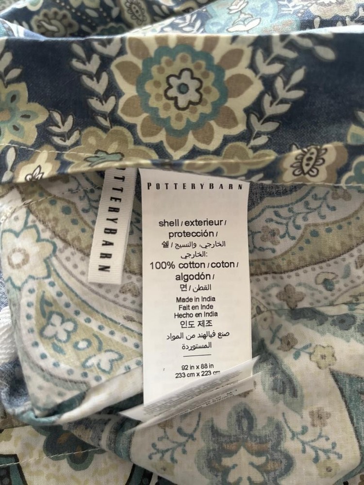 BEAUTIFUL POTTERY BARN BLUE JORDANA PAISLEY PERCALE QUEEN DUVET. MEASURES 92" LENGTH X 88" WIDTH. BRAND NEW WITH TAGS * BIG BUTTON CLOSURER....