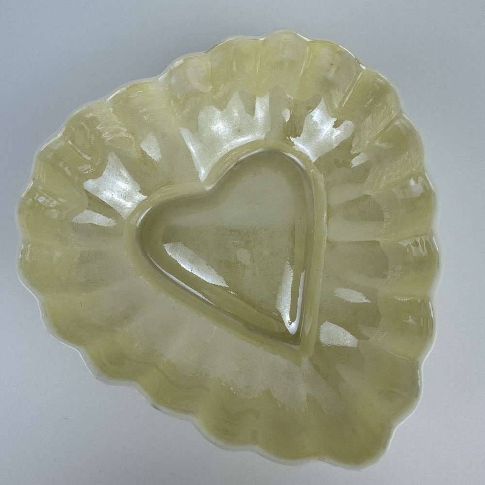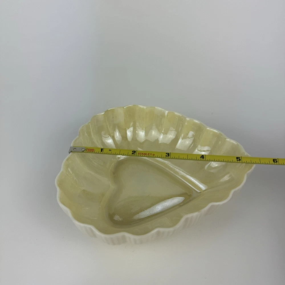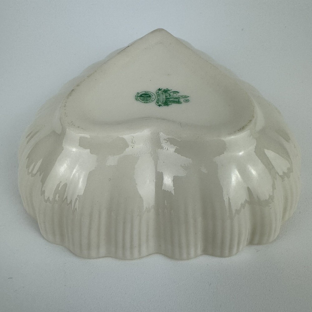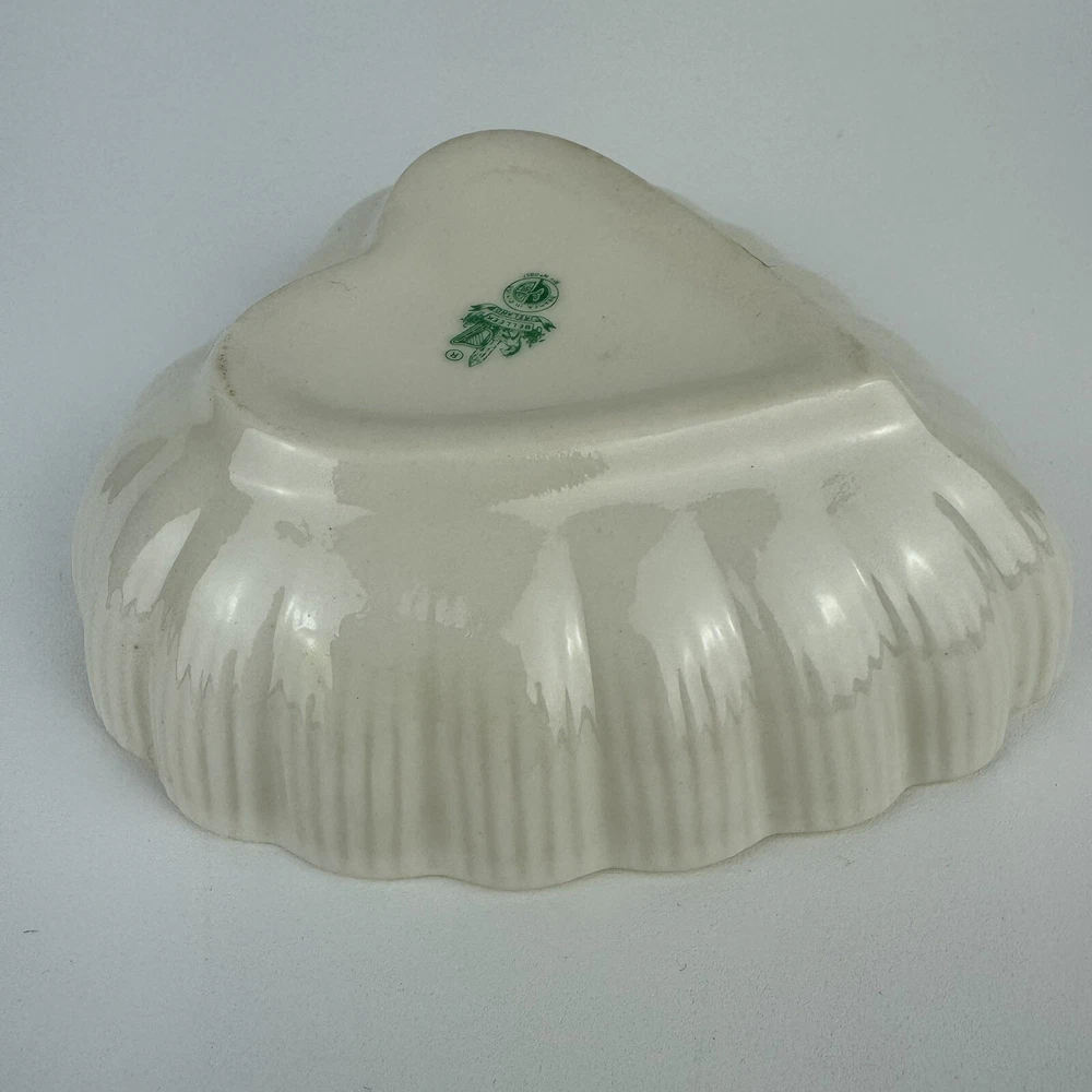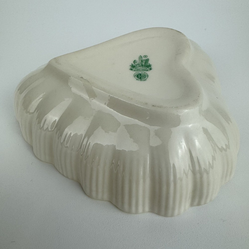 This beautiful Belleek Irish Porcelain candy/trinket/jelly dish is a must-have for any collector or lover of vintage studio-crafted pieces. The heart-shaped design, with a glossy yellow finish, is both charming and elegant. Measuring 4.5” x 4.75”, this dish is perfect for storing small items or simply displaying it as a decorative piece. The backstamp is printed and the production technique is studio crafted, adding to its unique and authentic design. Don’t miss out on this original piece from the Belleek product line. Thank You for your interest.