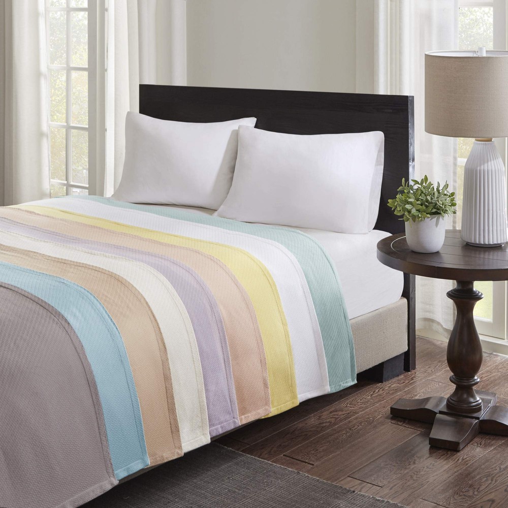 Cozy up in of the softest cotton blankets on the market. We take the highest quality cotton and spin it into a very smooth and soft material that we Liquid Cotton. This blanket's cotton material virtually eliminates pilling to give you a lasting blanket that you will not have to replace year after year. Our Liquid Cotton blanket has reduced shrinkage compared to other cotton blankets. Cotton naturally wicks away moisture and is breathable which helps regulate your temperature at night, giving you year round comfort. This blanket is also OEKO-TEX certified, meaning it does not contain any harmful substances or chemicals to ensure quality comfort and wellness. A classic cotton comfort that comes in vibrant color; our liquid cotton blanket is a premium 100% cotton blanket that's particularly ring spun and woven into a smooth patterned blanket. This is a perfect summer blanket featuring exceptionally soft premium cotton that naturally wicks away moisture, and breathable giving you year round comfort. Our liquid cotton virtually eliminates shrinkage and pilling, giving you a lasting confidence in quality and durability in the years to come. 1 Full/Queen Size Blanket: 90"W x 90"L For you convenicend it's machine wash cold, gently and separately. Do not bleach. Tumble dry low. Remove promptly.