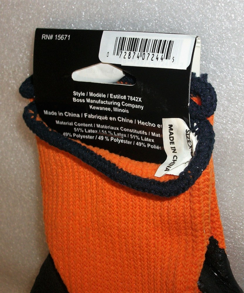 BOSS FLEXI GRIP PLUS HIGH-VIS ORANGE LATEX PALM XL 34 DIP TEXTURED LATEX PALM SIZE XL NEW NO BOX