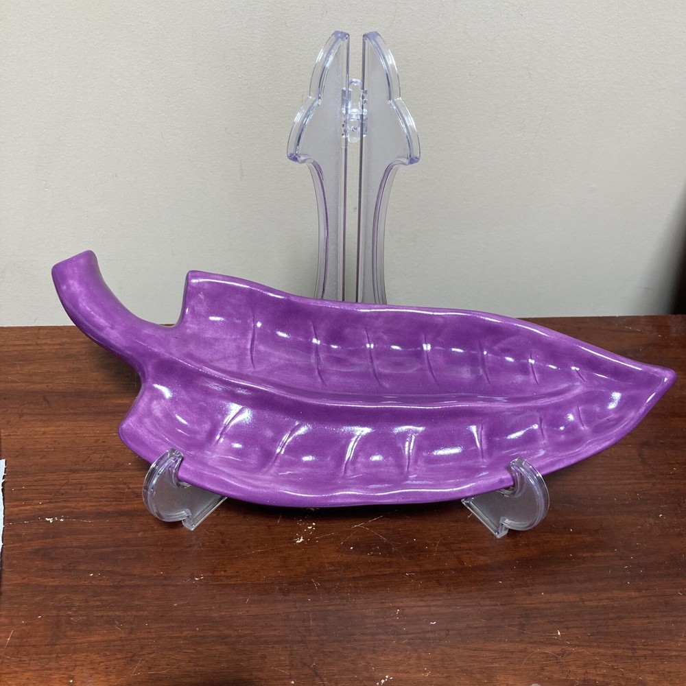 BROUSSARD STUDIO PURPLE 15” Leaf Dish. Artist Signed....