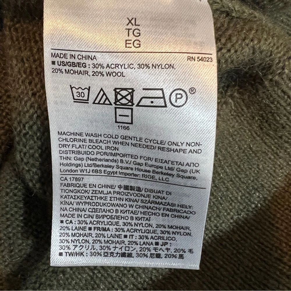 Banana Republic Sweater Women's XL Dip Dye Ombre Mohair Wool Blend Pull Over Pre Owned Size: XL Drop Sleeve Ombre Grays/Olive Greens Long Sleeve Stretch 30% Acrylic, 30% Nylon, 20% Mohair, 20% Wool See photos for approximate measurements