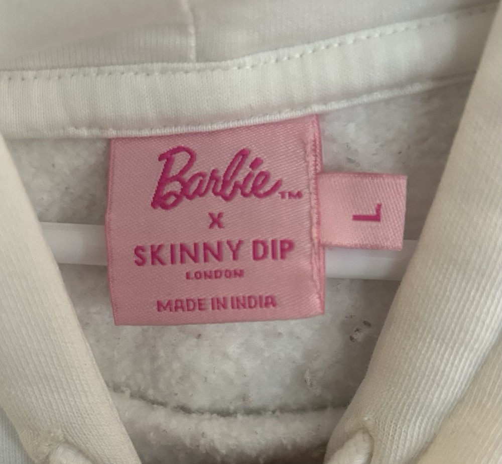 Elevate your activewear collection with the Barbie X Malibu Skinny Dip Women’s Hoodie in size Large. Crafted from 100% cotton, this white pullover features a solid pattern and a comfortable regular fit, making it perfect for any cheereading activity or casual outing. The hoodie is hooded and has a cotton lining for added warmth during the winter, fall, and spring seasons. The Barbie character and Barbie-themed product line make this hoodie a must-have for any Barbie enthusiast. It is a regular size type and has a size of L. This pullover has a vintage look and is personalized to fit your unique style. Add this hoodie to your wardrobe and show off your love for Barbie while staying comfortable and warm.