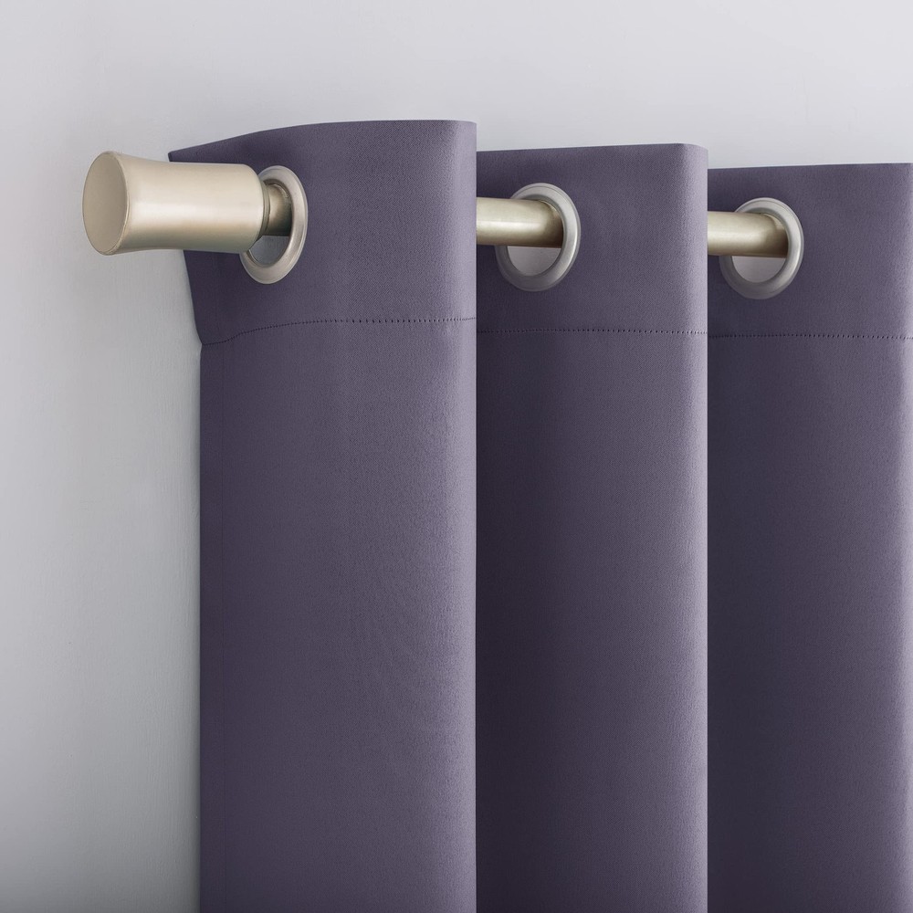 By combining the latest fashion trends with breakthrough performance technology, blackout curtains offer the best control of your home environment without compromising on style. These curtains are built with UPF 50+ UV protection, which helps shield them from the sun’s harmful rays. These energy efficient black out curtains offers noise reduction to keep the noise and chill out of your home this fall and winter. Room Darkening technology blocks out some unwanted light while enhancing privacy Energy efficient design reduces energy lost through your windows by up to 25% Thermal properties help keep summer heat and winter chill out of your home Noise reduction up to 25% helps you get a sounder, more uninterrupted sleep Built-in metal grommets fit curtain rods up to 1.5" in diameter Pair includes (2) panels. Measure carefully prior to purchase.