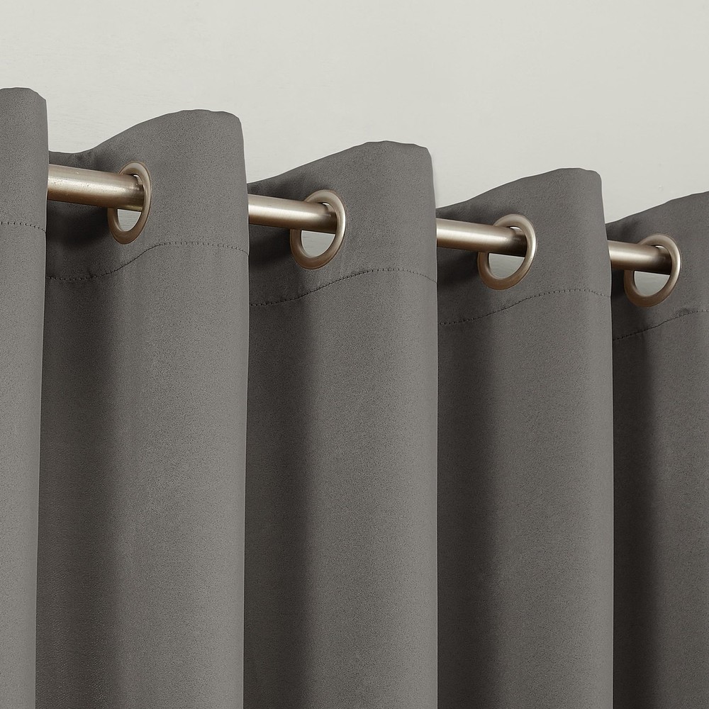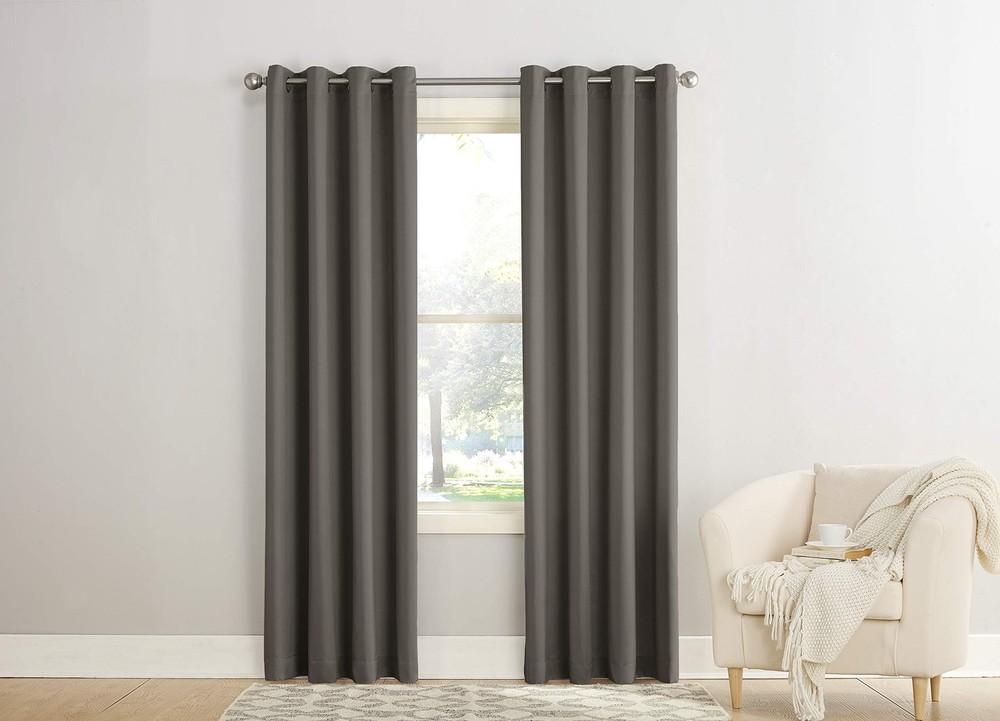 Barrow Energy Saving Energy Efficient Grommet Curtain Panel Pair brings style and energy efficiency to any home. The woven solid design with an easy to hang grommet-top offers a classic style that fits in with any room decor while reducing light and noise for better sleep; help keep your home cooler in the summer and warmer in the winter. Curtain panel is made of materials that reduce light, and considerably darken the room. Some light will show through. These materials do not allow a view through and provide complete privacy. The darker the color the better the light reducing capabilities. Sold as a pair including panels. Hang on a rod up to 1.5 inch in diameter. Pair includes 2 panels, each measuring 54" width by 95" length. Measure carefully before selecting your desired size and quantity. Rod not included. Machine wash cold on gentle cycle. Use non-chlorine bleach when needed. Tumble dry on low heat, using a cool iron as needed. Room Darkening technology blocks out some unwanted light while enhancing privacy Energy efficient design reduces energy lost through your windows by up to 25% Thermal properties help keep summer heat and winter chill out of your home Noise reduction up to 25% helps you get a sounder, more uninterrupted sleep Built-in metal grommets fit curtain rods up to 1.5" in diameter Pair includes (2) panels. Measure carefully prior to purchase.