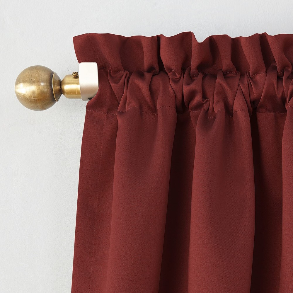 These curtains are fantastic! The rich brick red color adds warmth to any room, and the rod pocket design makes them super easy to hang. They block out light nicely while helping insulate the space—perfect for saving energy. The fabric feels durable yet soft, and the set of two is a great value. Highly recommend for both style and function!