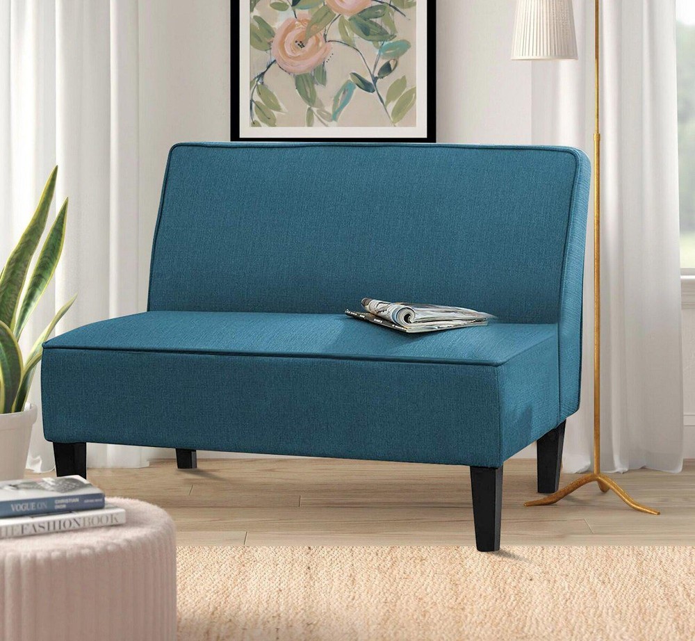 Baskas 44.5'' Upholstered Loveseat A bed or sofa is suitable for sitting, napping, reading, watching TV, etc Use lots of soft sponges, comfortable touch feeling This modern armless loveseat adds a pop of color and versatile seating to your living room or office. With its sleek design and 100% linen upholstery, it creates a statement piece while offering comfortable seating for two. The solid wood frame and pine legs in a black finish provide a strong foundation, while sinuous springs and foam-filled cushions ensure a cozy experience. The loveseat two matching toss pillows for added style and support. Just sit back, relax, and enjoy the contemporary flair of this eye-catching loveseat. It has a weight capacity of 500 lbs.