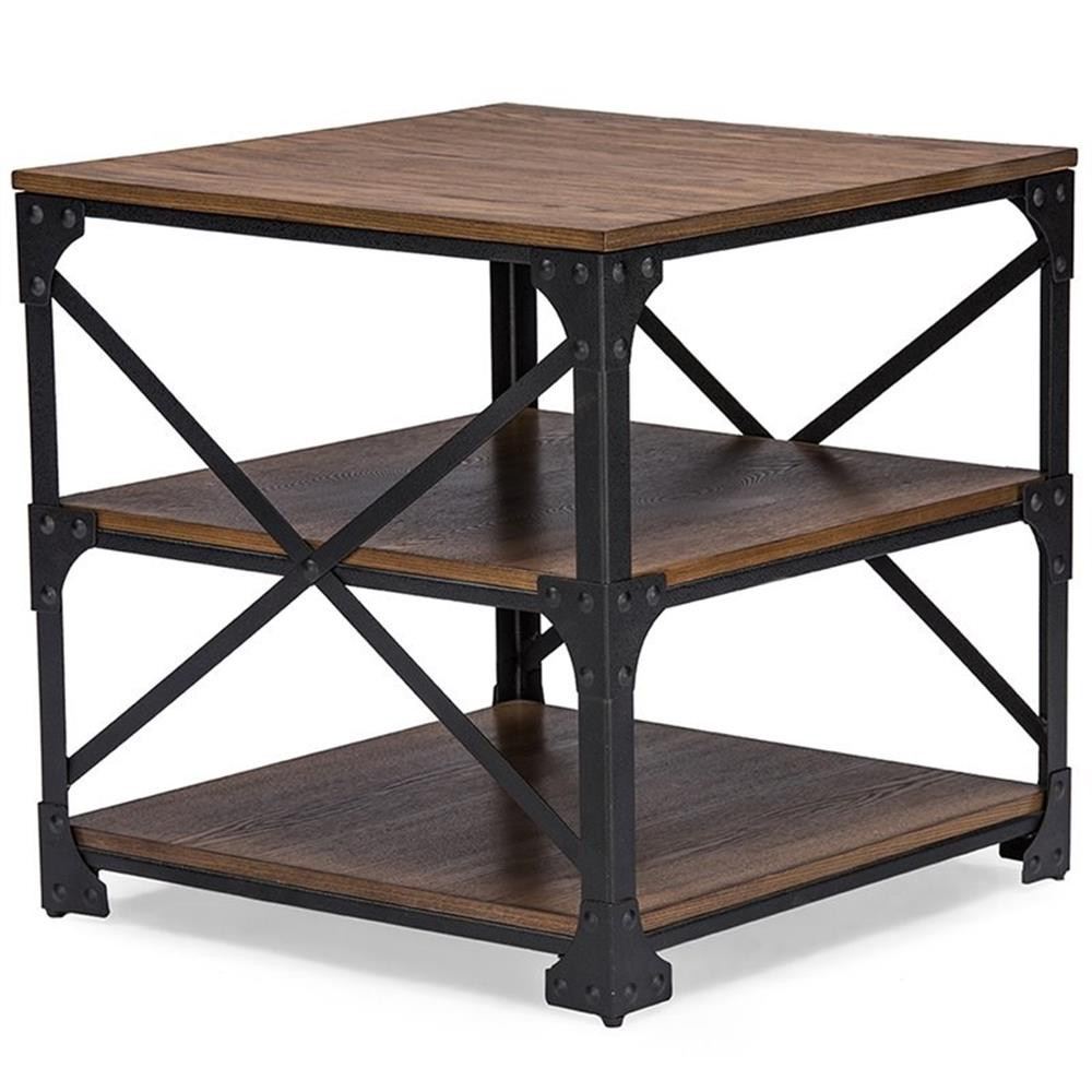 Pairing iron metal frame with distressed finishing wood board, this occasional end table is a striking centerpiece for your living room. Rustic oak wood grain textured top and the distressed finishing lend a vintage look to the thick table tops. Combined with the metal frame and the classic detailing of vintage industrial furniture, the table is solid and sturdy. Bold in scale and rich in character, a versatile end table is perfect for living room decor. Made in China, the table requires assembly. Features: Vintage industrial design Antique bronze finishing solid iron metal frame MDF wood in distressed finishing Classic detailing