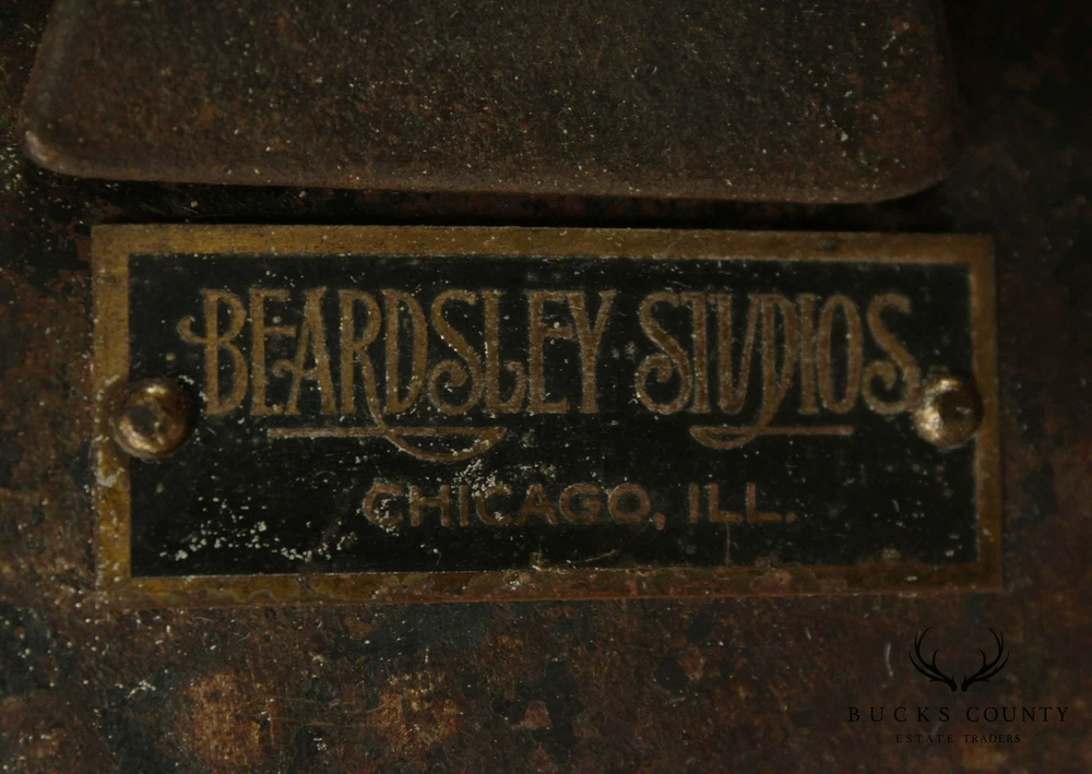 Shipping is not included in the price, please contact us for details before purchasing Store Item #: 26525 Beardsley Studios Chicago Art Deco Wrought Iron Floor Lamp AGE/COUNTRY OF ORIGIN : 1900's, America DETAILS/DESCRIPTION : High Quality Hard Forged Hammered Steel Floor Lamp, Arts And Crafts Period, in The Style of Edgar Brandt Labeled Beardsley Studios Chicago, I11. STYLE: Art Deco CONDITION REPORT : Clean Vintage Condition. Age Appropriate Wear MEASUREMENTS : H: 44.15” x W: 13.75” x D: 10” All of our items are either pre-owned vintage or antique and may show usual signs of wear and use. No international buyers, please. Items must be paid in full within 5 days of the auction end. Please note that we will hold items up to 30 days but any longer (without prior approval) incurr storage fees of 10% of the order total, per month. Also please note that a 15% restocking fee may be assessed on returns for reasons OTHER THAN “Item not as described” per the Return Policy. All other returns, including deciding not to purchase the item, may also be assessed a 15% restocking fee. Shipping is not included in the price, please contact us for details before purchasing Although we strive to get your item to you as quickly as possible, standard shipping time for freight items is 3-6 weeks, sometimes longer (and other times as quick as 1-2 days). WE DO NOT OFFER GREYHOUND SHIPPING PLEASE REVIEW THE FOLLOWING CHECKOUT PROCEDURE IF YOU REQUIRE SHIPPING If you are picking the items up from our showroom or you are hiring a shipping carrier directly, then you can checkout without performing the following to request the shipping cost. If you will be utilizing Bucks County Estate Traders to ship your purchase to you, then you must perform the following steps to ensure your order is processed correctly: Proceed from your eBay cart to the Checkout page. This is the page where it is prompting you for your payment information.? Do not enter your payment information or click the "Pay" or "Pay with PayPal" buttons. Instead, scroll to the "Review item and Shipping" section. Locate and click the Request total or request order total link. From the Order Details page, provide any additional details that might affect your delivery, such as driveway access, street parking only, 2nd floor or basement installation, elevator scheduling required, etc. Click the Commit to buy & submit request . Once we receive your request, we will update the order with our best shipping price (we strive to respond the same day). You will then receive a new invoice securely within eBay, for which you can then provide payment. *** Please be assured that although eBay states that you are committing to buy, we understand that you cannot truly commit to buying without knowing your shipping costs. If you are unhappy with the shipping costs for any reason, we will cancel the sale and refund any fees that may have been collected. Local pickup is available Monday-Saturday, 8:30 am-4:00 pm in Hatfield, PA 19440. Item(s) must be paid in advance as we will not release until confirmation of payment. Please call us or email us upon completion of the sale to confirm your shipping arrangements. We will not release the item for shipment until you have confirmed a shipping method. When purchasing shipping services through Bucks County Estate Traders, you acknowledge and agree to our shipping process which includes : We use individual white-glove freight carriers. Your items will be blanket warpped and treated with the care deserved for your fine quality items. These carriers typically take 3-6 weeks to deliver. Again, this is a typical timeline and longer delivery is possible. Expedited shipping with a firm date is avaiable, but that pricing will be at higher rates. If expedited shipping is desired, you must request it and specify the requested maximum delivery date. All shipping is presumed to be standard 3 to 6 week shipping unless requested by the customer. Our carriers DO NOT provide tracking information. They are not big national corporations. Instead, they are small businesses that provide personal care to the delivery of your items. Bucks County Estate Traders does track all of our shipments. We welcome you to communicate with us at anytime to get a status of your shipment. However, there are no external systems for you to track your shipment directly. If you do not agree to these shipping terms, your may arange your own shipping with the carrier of your choosing for no additonal cost. Simply choose the Local Pickup option instead of shipping. We will also drop off your items at our local UPS store for free. OFFICE CODE: 26525-BCET