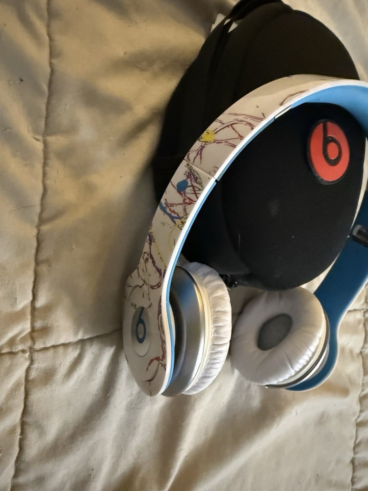 The Beats By Dr. Dre Solo HD Artist Series Futura Headphones are high-quality wired headphones with a sleek headband design and comfortable ear-pad on-ear style. These headphones come in a stylish white and multicolor color scheme, featuring adjustable headband, foldable design, and stereo sound for immersive listening experience. Ideal for studio monitoring, DJing, music, and live monitoring, these headphones are a reliable choice for those seeking both style and performance in their audio equipment. Made by Beats by Dr. Dre, a trusted brand in the portable audio and headphones industry.