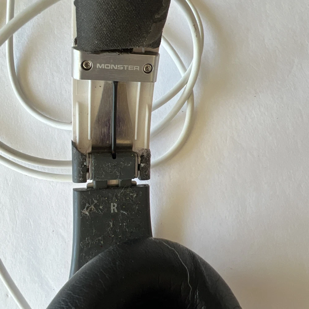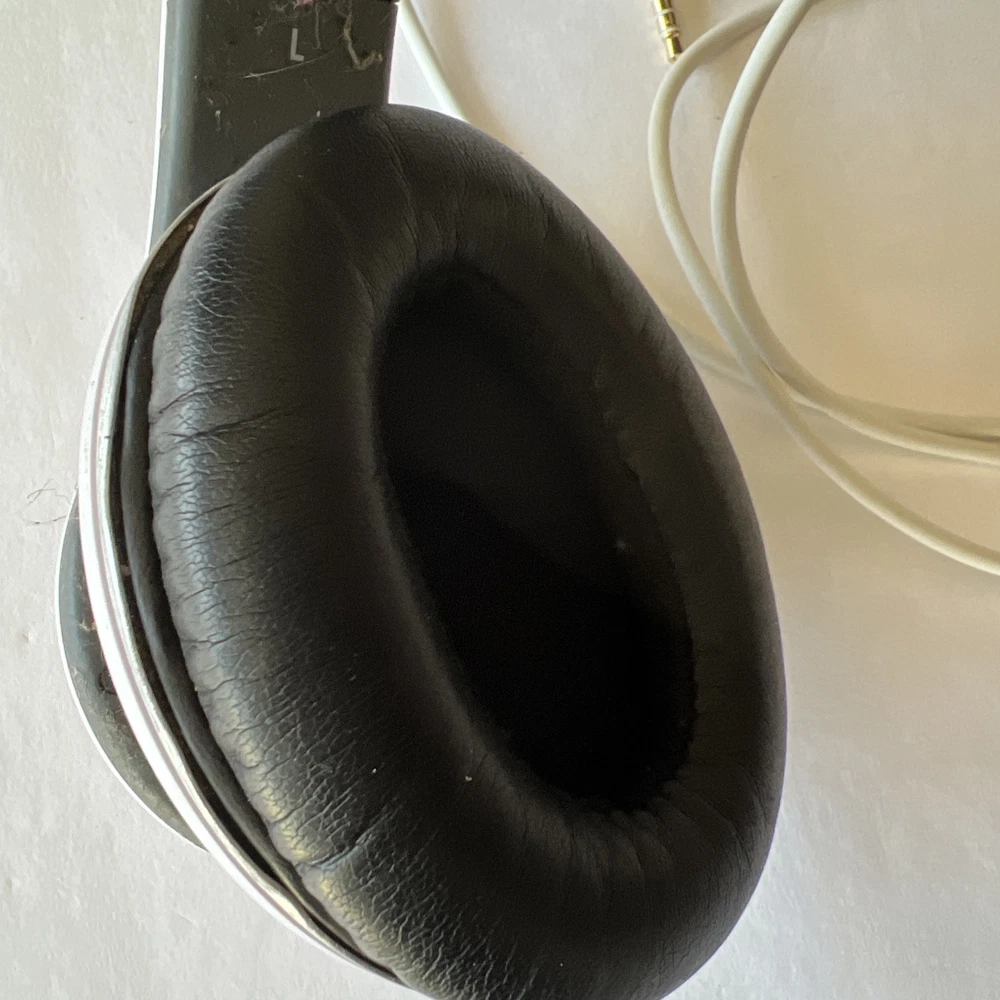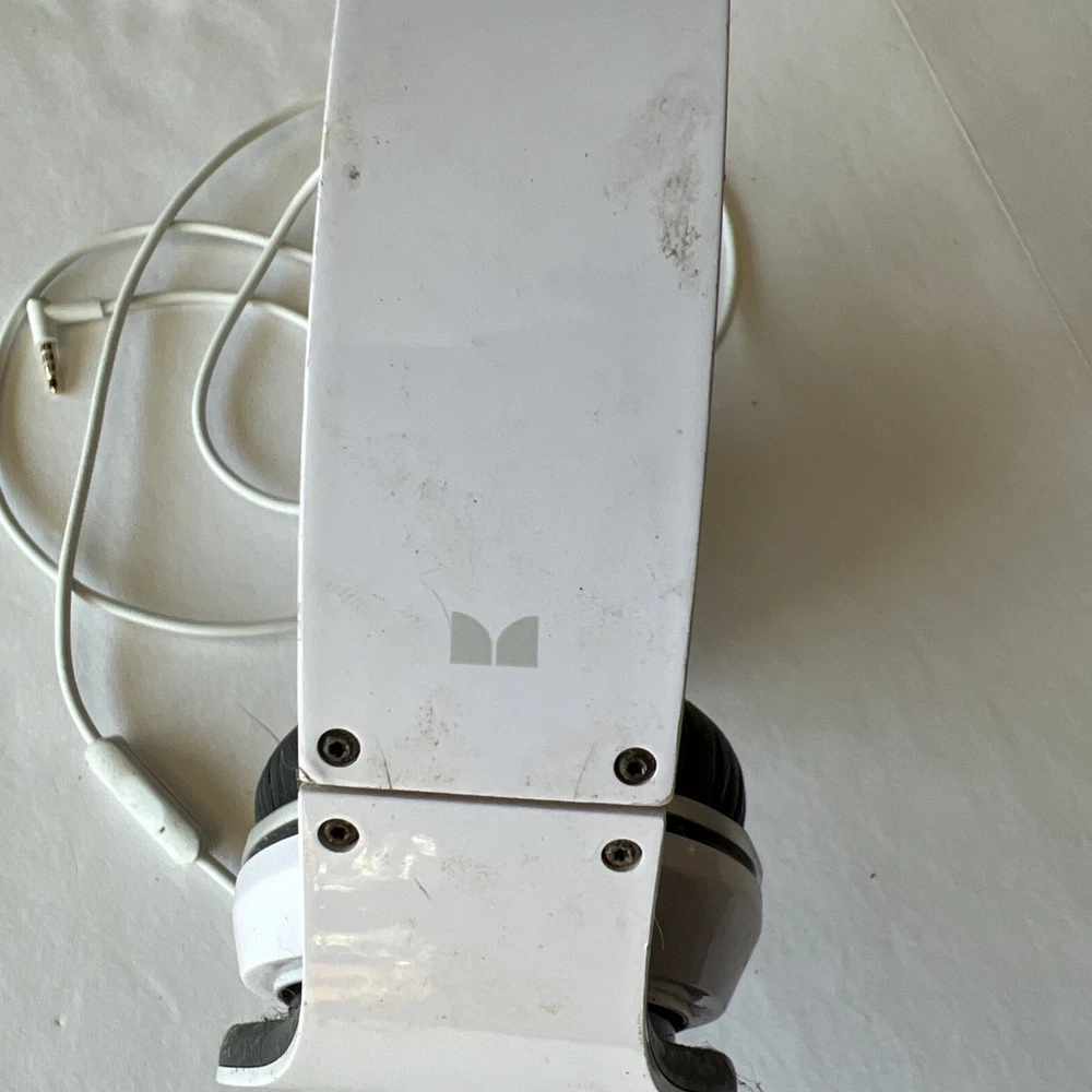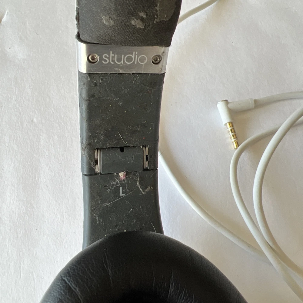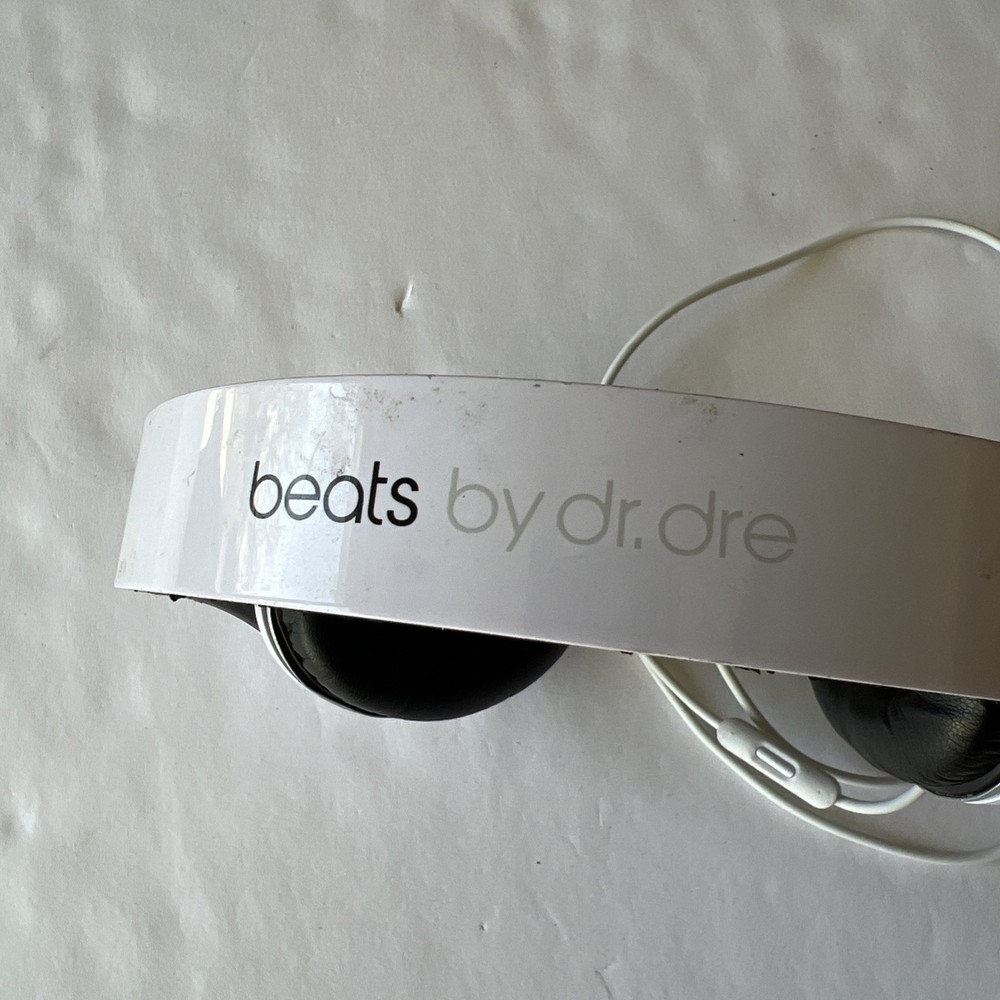 Beats By Dre - STUDIO Headphones - Over Ear - White - Working, Needs Repair Working and sounds great, but there is a plastic piece on the headset chipped off. Earpad foam is in very good condition, but headband is peeling off and disintegrating a bit. See pics for exact details. Ships out same day or next day via USPS in most cases Thanks for looking!