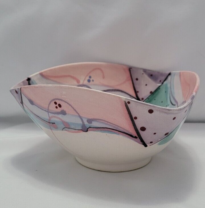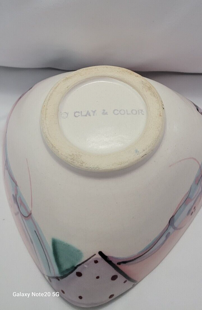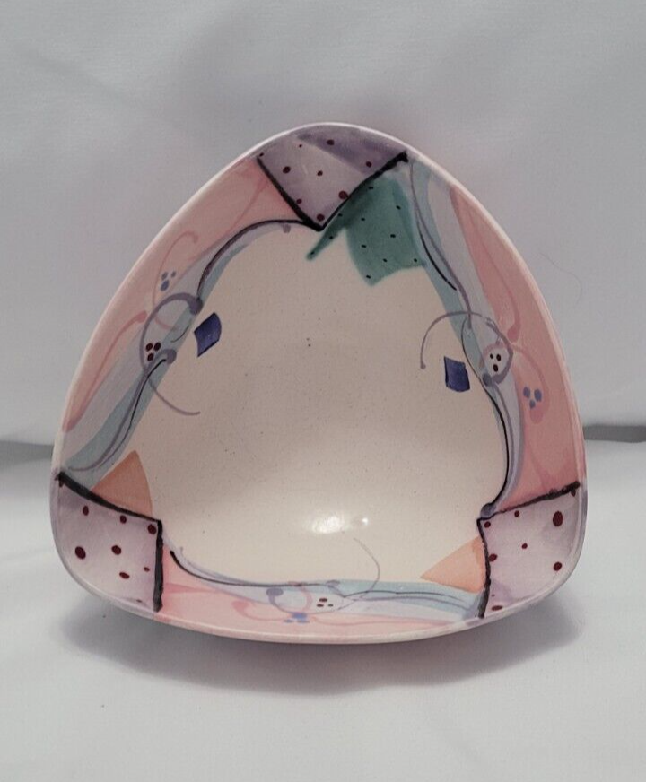 Add a touch of mysticism to your decor with this beautiful triangular shaped bowl from Clay & Color Studio. The bowl is hand painted with intricate patterns and designs, making it a unique addition to any contemporary or eclectic home. Crafted from high quality clay, this bowl is durable and features a glossy finish that adds to its visual appeal. Use it as a decorative piece or for serving snacks and candies at your next gathering. The bowl comes in a vibrant multicolor scheme that will brighten up any room. Each side is 6.25 long and there are 3 sides. The Base is 3 inches across and is round. The high from the table top up is 3 inches