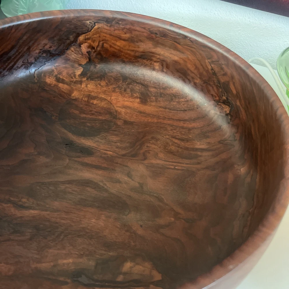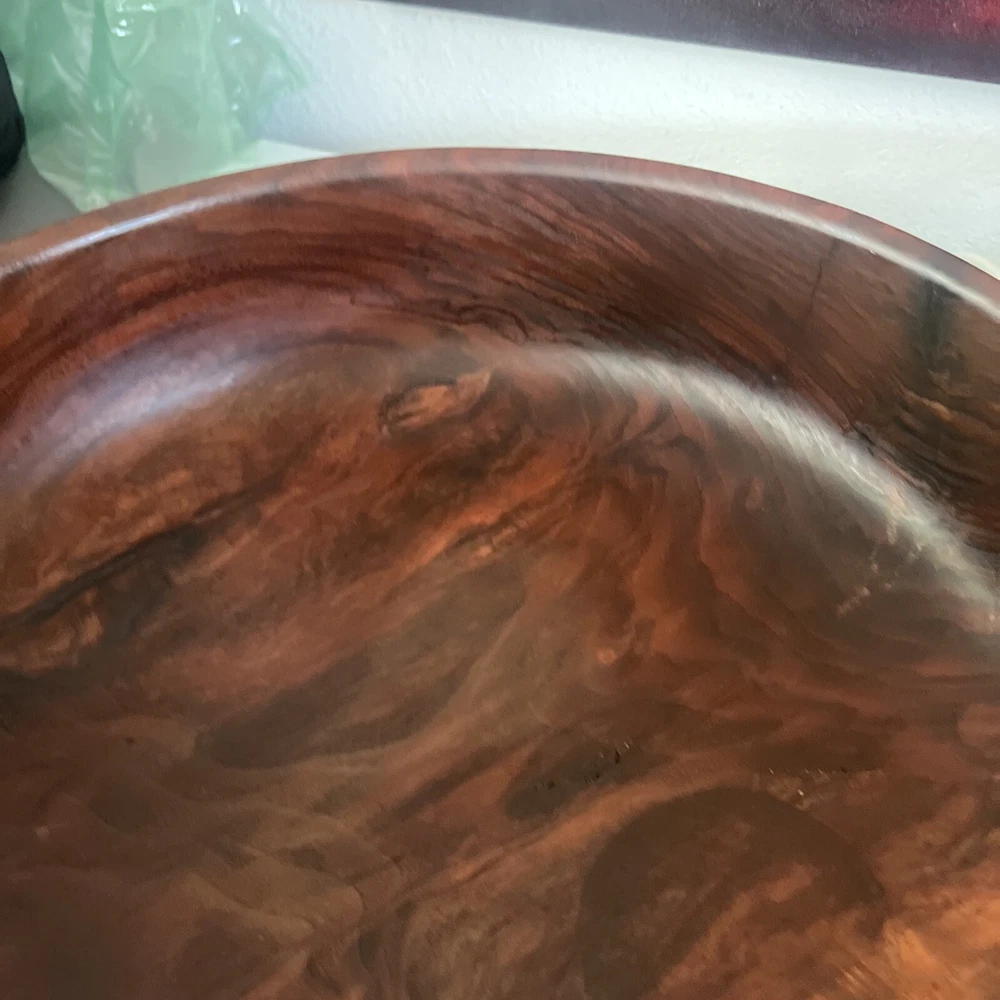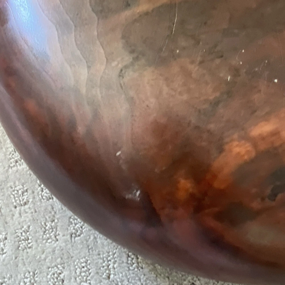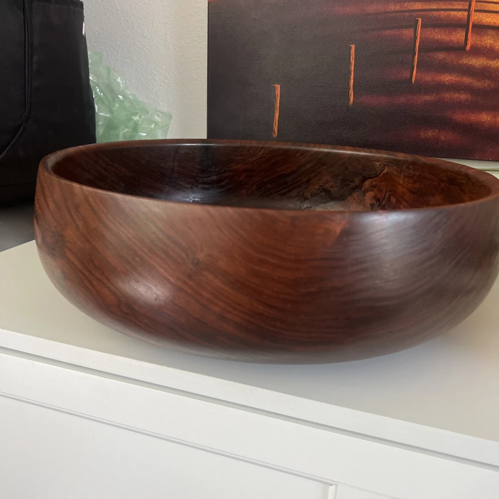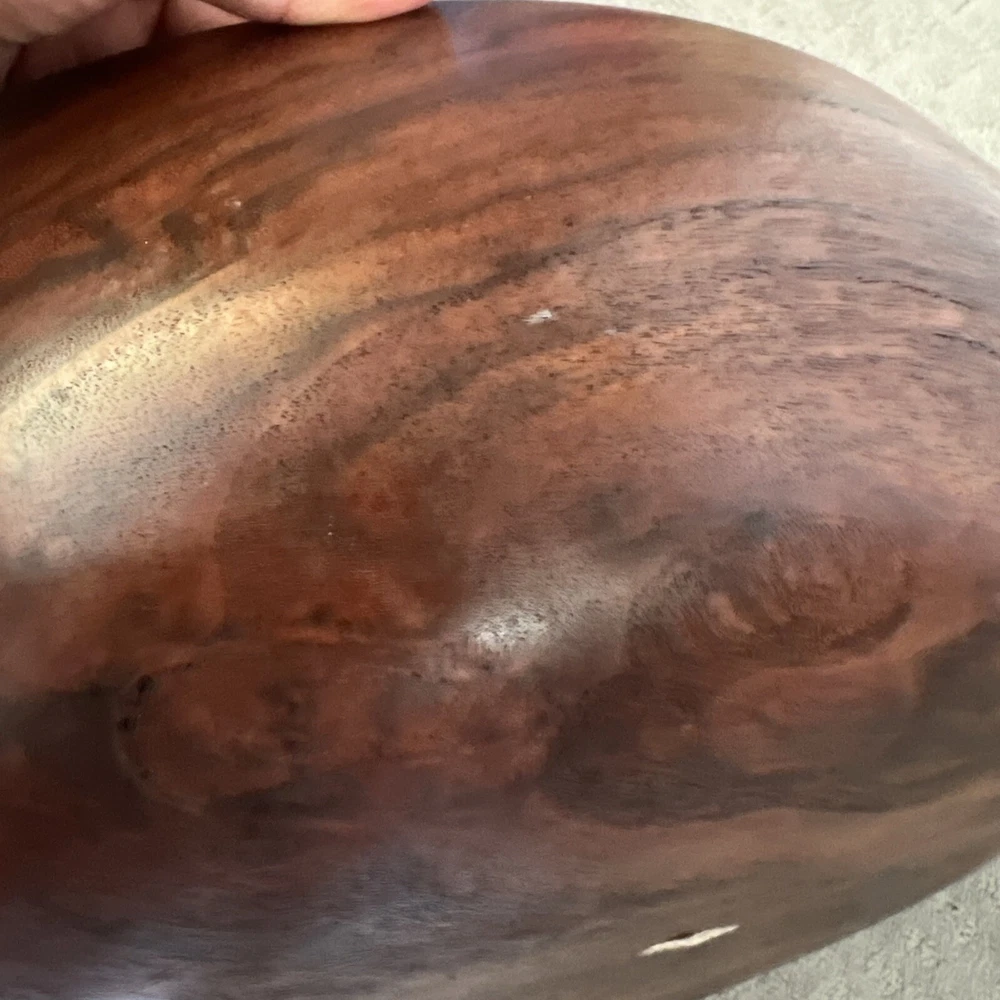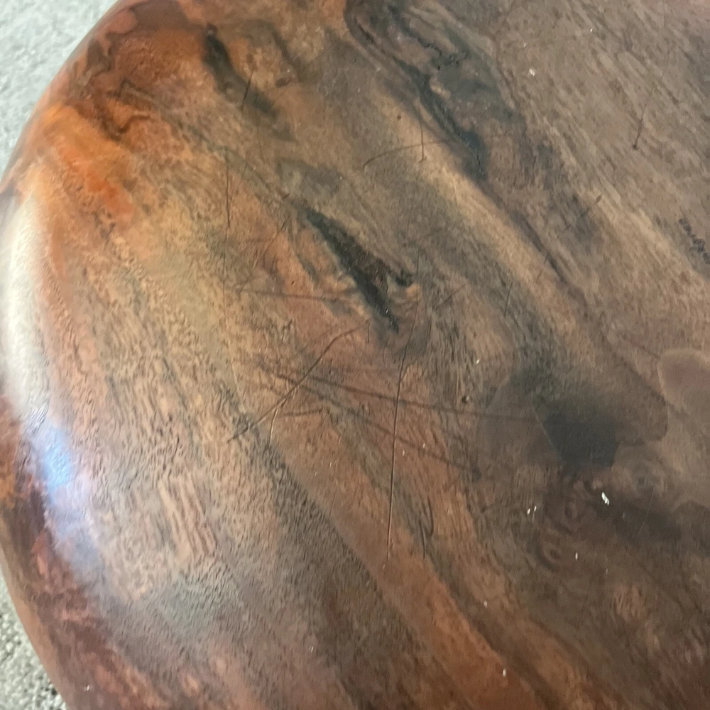 Handcrafting wooden bowls, urns, vases and more for over 26 years, Barry Lundgren’s woodturning is true art. The pieces are as diverse as the wood he works with, each unique in grain pattern, color, sheen and presentation. Lundgren has pieces in the VAULT GALLER and POP CULTURE ART GALLERY Inside of bowl does have a Water ring stain. There are few marks and scratches. See pictures.