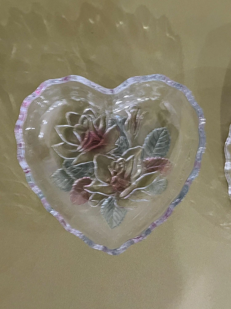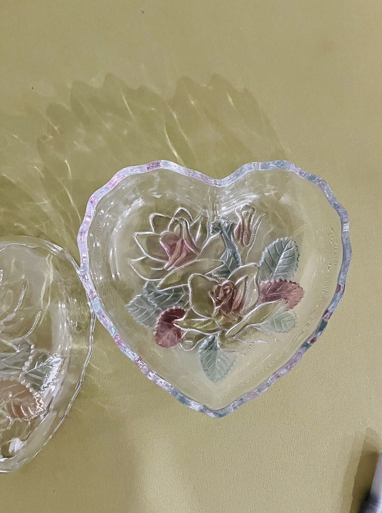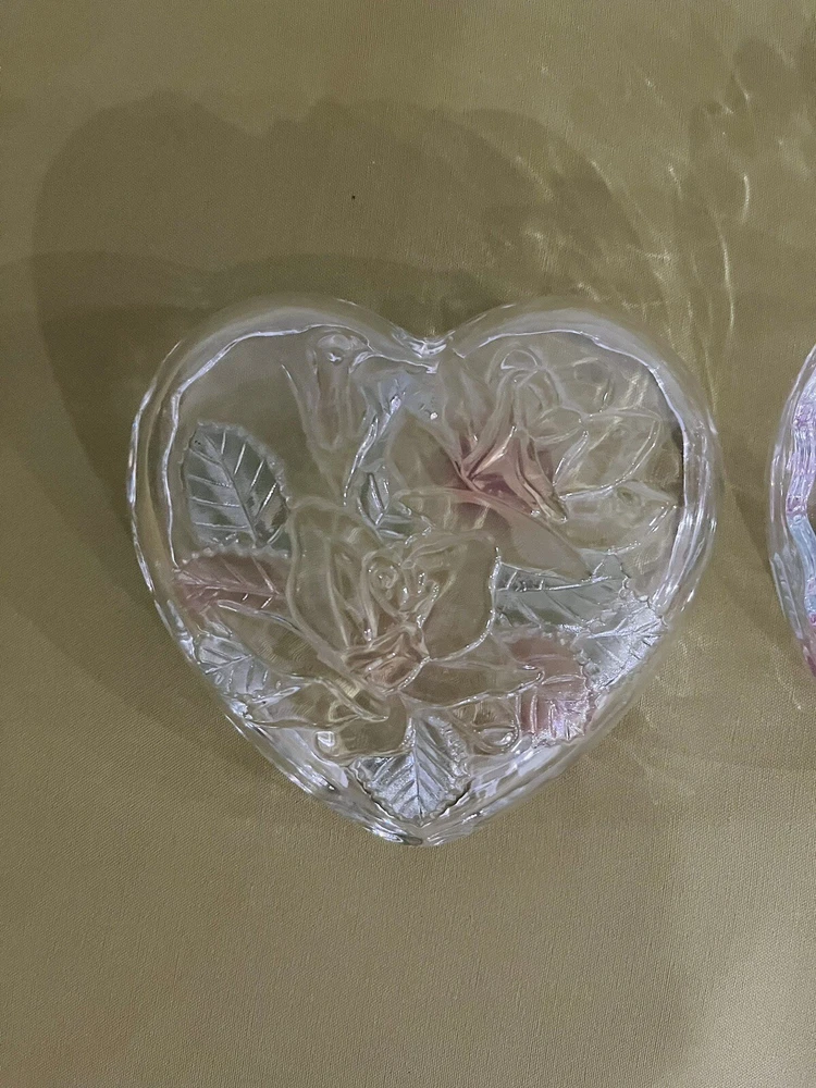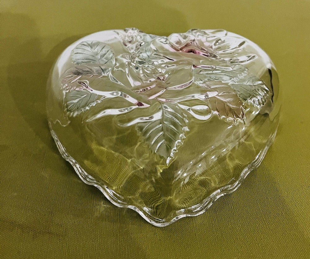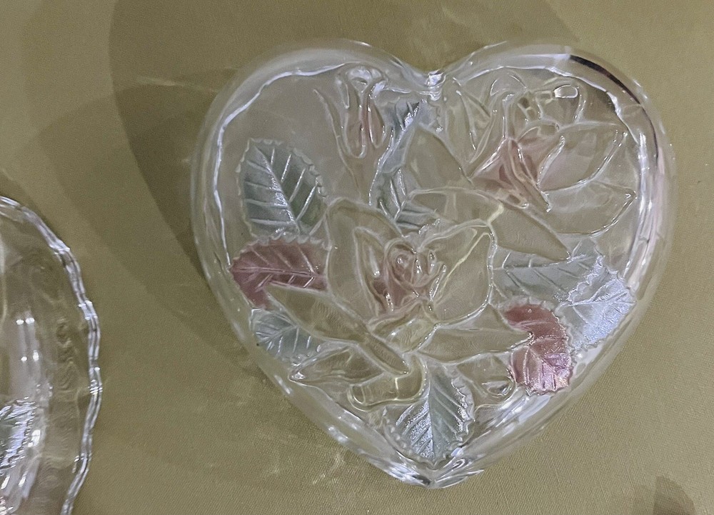 Beautiful Studio Nova Beauty Rose Embossed Candy Dish with Lid or 2 open table accents. Measures with lid 6” D, 3” H New in original box. Perfect for a Valentines Gift.