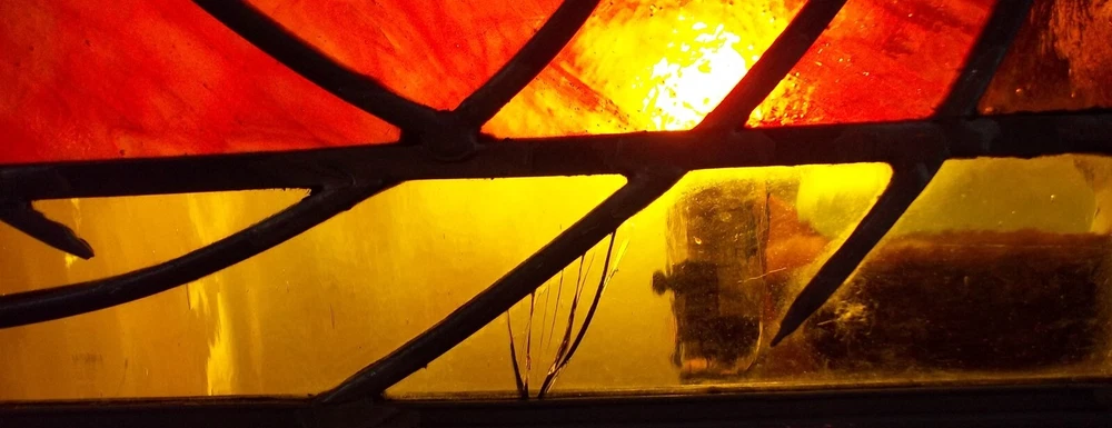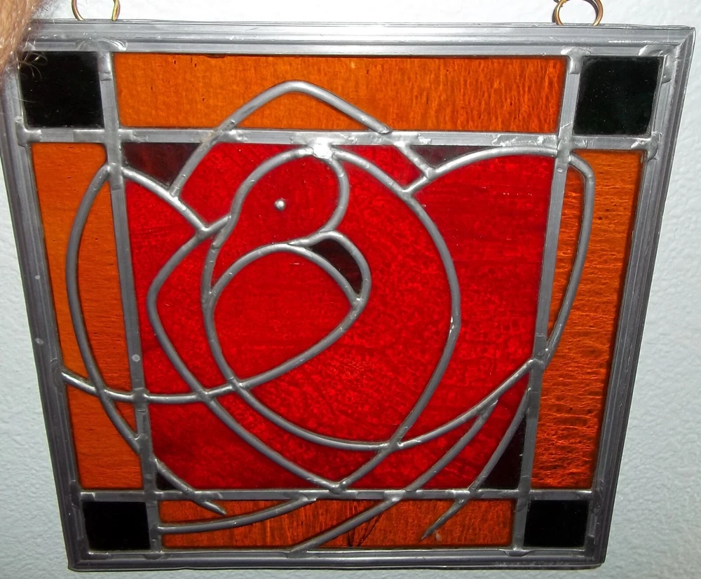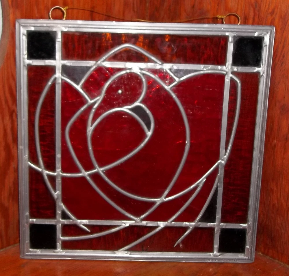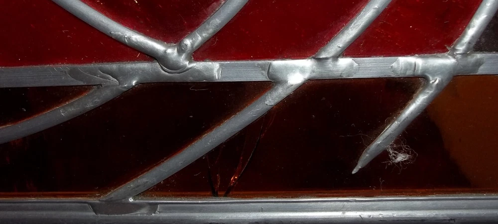 Approximately 12 1/4 inches wide..Looks great..One bottom panel is cracked,as you can see in the pictures.i dont see or feel any other damage..it really looks fantastic in the light....heres what i found on their website.. Osler-Kurki Studio creates authentic leaded glass panels constructed in the traditional way, using only hand-rolled and blown glass. They offer a variety of styles ranging from colonial to Victorian, Arts and Crafts, and natural and representational motifs. Each project is an original piece of art, hand-crafted with unique design and structural details"..
