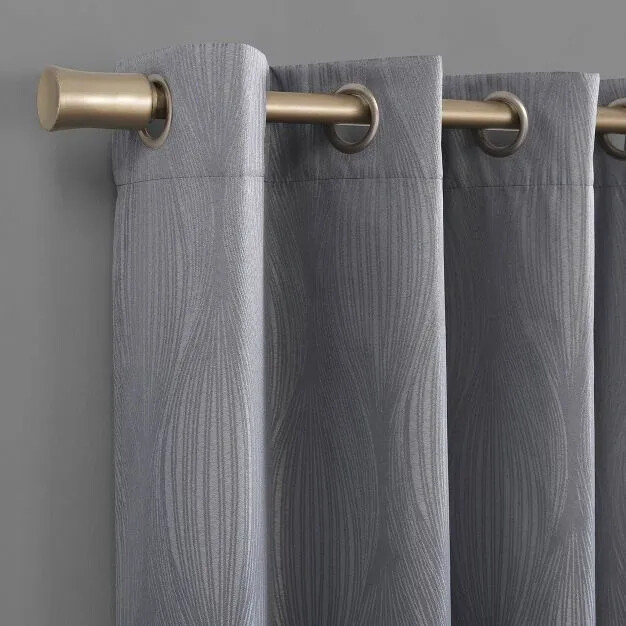 Subtle tone on tone geometric ogee pattern adds dimension Extreme Thermal Blackout technology blocks out 100% of outside light Thermal properties help keep summer heat and winter chill out of your home Built-in metal grommets fit curtain rods up to 1 ½" in diameter Noise reduction by up to 40% helps you get a sounder, more uninterrupted sleep Dimensions (Overall): 84 Inches (L), 52 Inches (W) Our Commitment to Your Satisfaction: If there is a problem with your item, We Will Take Care of It: If you receive an item that is defective, damaged, or not as described above, we will resolve the problem as quickly as possible at No Cost To You. We will work with you to arrange for repair or replacement if possible. We will issue a return label if return is needed, and we will file a shipping damage claim. You can expect a full refund of your original payment within three business days of our receipt of the returned item. If you've simply had a change of heart or made an incorrect purchase, we understand. You're welcome to return the item in its original condition, along with all packaging and accessories. PLEASE NOTE; that in such cases, you'll be responsible for both the original and return shipping costs. It's important to mention that items labeled "AS IS" with a "NO RETURNS" policy are exempt from our standard return procedure. Unfortunately, these items cannot be returned for any reason. Should you need to cancel your order before it ships, we accommodate mutual cancellations with a nominal $10.00 restocking fee. This fee helps cover the administrative time and processing costs associated with the cancellation.