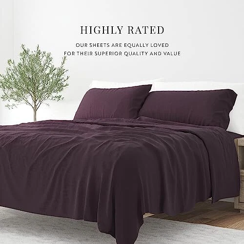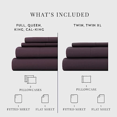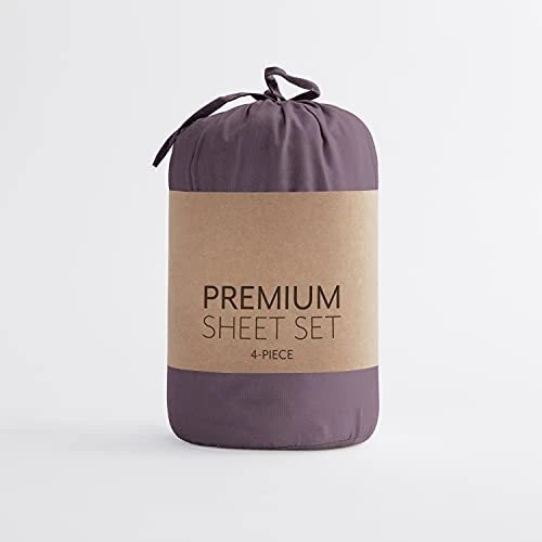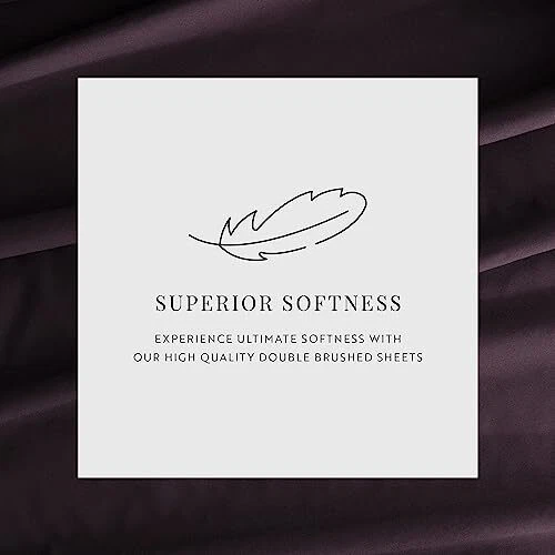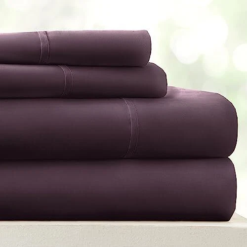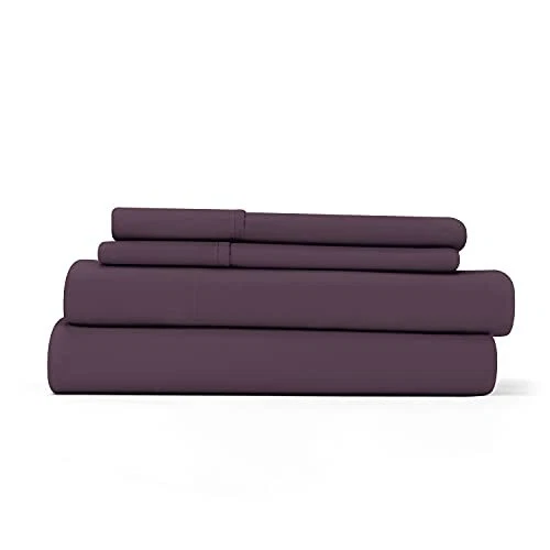 Give your room a refreshing new look and feel with this easy care, deep pocket, sheet set by . This set is made from 90 GSM double brushed microfiber, creating a soft finish that makes you want to stay in bed all day. The moisture wicking properties, help keep you dry - it also helps transfer body heat allowing you a comfortable night's sleep. You also don't have to worry about high maitenence upkeep with this wrinkle resistant, machine washable set - just throw it in the washing machine with cold water, and tumble dry on low! (Be sure not to use bleach or fabric softener - and follow all care instructions listed on the product's tag). Featuring a variety of colors and patterns, find the one that will help elevate the design of your bedroom. ULTIMATE COMFORT: Get ready to sleep soundly every night with your new luxurious queen bed sheets. Soft, cozy and comfortable, they're the perfect way to treat yourself to the ultimate sleep experience. EASY SHEET CHANGES: Finding sheets that fit deep beds can be frustrating, but not with our deep pocket sheets. Our design allows for your new sheets to easily fit up to 16” deep beds. This set includes a fitted and flat sheet, and two pillowcases. LOW MAINTENANCE BEDDING: Our bed sheets are machine washable, making it easy to keep them looking and feeling their best, wash after wash. Say goodbye to the hassle of hand washing or sending your bedding to the cleaners. MADE TO LAST: Pets, kids, and family life can take a hard toll on sheets and other bedding, but our sheets are made to last. Expert stitching and seams ensure that your queen sheet set will stand up to wear and tear for years to come. NO MORE BORING BED SHEETS: Our purple bed sheets are sure to add a touch of elegance and brighten up any bedroom. With five sizes and nineteen color options to choose from, you're sure to find a match for your décor.