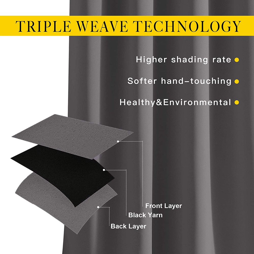 Menu Other Items Feedbacks About Us Contact Us Add To Favorites Bedroom Blackout Curtains Panels - Window Treatment Thermal Insulated Solid Grommet Blackout for Living Room (Set of 2 Panels, 52 by 54 Inch,Grey) 100% Polyester Elegant Design: 2 panels per package. Each Blackout Curtain measures 52" wide x 54" long. The design of silver grommet (1.6-inch inner diameter) creates casual elegance for your house, which makes the curtains easy to install and slide. Nice Material: Super heavy and soft Blackout Curtain Panels are very upmarket. Besides, 85%-99% light blocking, thermal insulated, soundproof, and energy-efficient. Thread trimmed and wrinkle-free, both sides are the same color. Good Performance: Protect your furniture and floor exposed to the sun, while still helping you on heating and cooling your home. Privacy protection. The greatest benefit is to bring you a good night's sleep, making you full of energy every day. Wide Compatibility: Don't bother looking for sheer curtains to match, choosing different styles of voile curtains with white color in the NICETOWN store. Such curtain sets provide a more permanent harmonious window dressing, making your home lively. Easy Care: Good quality finishing will withstand years of use. Machine washable and Wash the water temperature below 86℉. Mild detergent no bleaching. Low-temperature ironing. Don’t use sharp things scratching curtains. Product Description HEAVY-DUTY SILVER RING Suitable for most curtain rods, and easily for hanging and sliding. HIGH DENSITY SUTURE The curtain fabric looks more exquisite and worthwhile. SAME FABRIC FRONT AND BACK The same fabric for both sides makes the curtain a simple style. TRIPLE WEAVE TECHNOLOGY Provide you with a perfect shading performance of about 50%-99% Blackout. DO WELL IN THERMAL INSULATED After insulating with the curtain, the temperature drops a lot. 1 SILVER GROMMET 2 HIGH DENSITY SUTURE 3 FRONT AND BACK 4 TRIPLE WEAVE FABRIC 5 THERMAL INSULATED TYPES OF CURTAIN TOP FOR NICETOWN BLACKOUT CURTAIN GROMMET TOP Make curtain orderly, easy to install and slide, so that let the room elegant. Recommended with no greater than a 1.6-inch rod for maximum movement. ROD POCKET Make some small pleats that give a feeling of cozy and classic. Recommended with no greater than a 1.7-inch rod for maximum movement. BACK TAB Give 3 options to hang curtains which is a perfect choice for window decoration. Recommended with no greater than a 1.7-inch rod for maximum movement. TOP TAB Creates casual elegance for your house, which makes the curtains easy to install and slide. Recommended with no greater than a 1.9-inch rod for maximum movement. TWIST TAB Not only creates rich, deep folds for a professional look, but also makes this panel easy to hang, open and close. Recommended with no greater than a 1.9-inch rod for maximum movement. PINCH PLEATED More gathered than other headings and have permanent sewn-in pleats for a more luxurious. Recommended with no greater than a 1.9-inch rod for maximum movement. CLASSIC AND POPULAR COLOR RECOMMENDATIONS COLOR SHADING DISPLAY THE COLOR OF THE ACTUAL ITEM MAY VARY SLIGHTLY IN DIFFERENT ENVIRONMENT Differernt Curtains in NICETOWN Add to Cart Add to Cart Add to Cart Add to Cart Add to Cart Add to Cart Add to Cart Customer Reviews 4.7 out of 5 stars 54,558 4.6 out of 5 stars 30,759 4.6 out of 5 stars 492 4.6 out of 5 stars 1,601 4.7 out of 5 stars 8,078 4.7 out of 5 stars 24,081 4.5 out of 5 stars 228 Price $15.17 $ 15 . 17 $23.79 $ 23 . 79 $41.69 $ 41 . 69 $24.95 $ 24 . 95 $19.89 $ 19 . 89 $10.79 $ 10 . 79 $24.95 $ 24 . 95 Top Style Grommet Grommet Rod Pocket /Back Tab/Hook Belt Grommet Grommet Grommet Rod Pocket & Back Tab Texture Triple Weave Triple Weave Triple Weave Thick True Linen Faux Linen Soft Voile Sheer Thick True Linen Privacy Performance √√√√√ (Total Privacy) √√√√√ (Total Privacy) √√√√√ (Total Privacy) √√√√ √√√ (Semi Sheer) √ (Transparent) √√√√ Blackout Performance ✔ ✔ ✔ ✘ ✘ ✘ ✘ Quantity 2 Panels 1 Panel 2 Panels 2 Panels 2 Panels 2 Panels 2 Panels Item Specification Item model number _Blackout Style Contemporary Number of Items 2 Assembly required No Pattern Solid Package Weight 1.05 Kilograms Theme Blackout Curtains Opacity Blackout Inches Unit Count 1.0 Count Room Type kids room, Bedroom, Living Room, Nursery, Dining Room Batteries required No Product Dimensions 54"L x 52"W Material Fabric Top Style Grommet Model Name NTGMBLKSLD2-GM2PCs Number of shelves 2 Seasons Winter Specific Uses For Product Room Darkening, Privacy, Sun Protection Curtain Form Drapes Perfume Unscented Item Weight 2.31 pounds Compatible with Rod Size 1.60 Special Feature Window Treatments, Blackout, Bagged Antibacterial treatment Thermal Color Grey Recommended Uses For Product Improving sleep quality, reducing noise, providing privacy, and serving as decorative elements in various rooms such as bedrooms, living rooms, kids' rooms, dining rooms, and nurseries. Size 52 in x 54 in (W x L) Fabric Type 100% Polyester Product Care Instructions Mild Detergent Number of pieces 2 Dimensions Shipping Returns Additional Info Product Dimensions: 52.0 "w x 54.0 "w. Weight: 2.31 lb Fast shipping is very important for us. Our standard shipping service is FREE. Your order will be shipped within 1-3 business days upon full payment received. Most items are delivered within 3-5 business days, however, please allow 3-10 business days. We are shipping only to USA. We only ship to the confirmed Paypal address. We reserve the right to cancel any order for any reason at any time. We are not responsible for undeliverable addresses. We offer a 30 day return policy from checkout winning date. Your satisfaction is guaranteed! If for any reason you are unhappy with your item, just return it within 30 days for a full refund, minus shipping cost. Please contact us prior to initiating a return so that we can issue you a refund authorization. Items defe