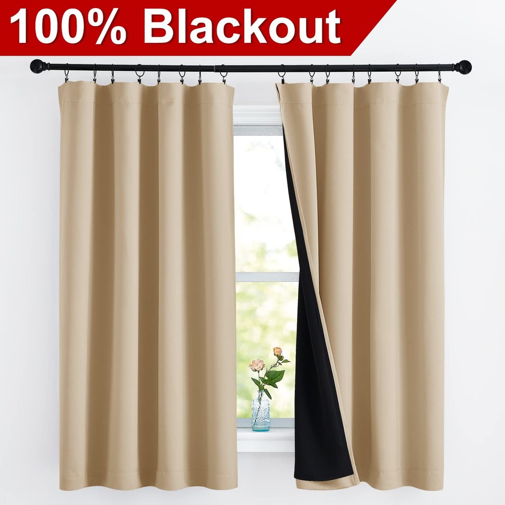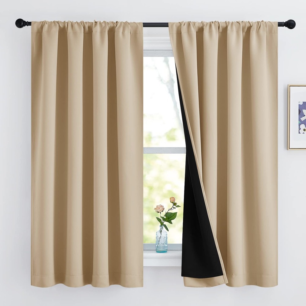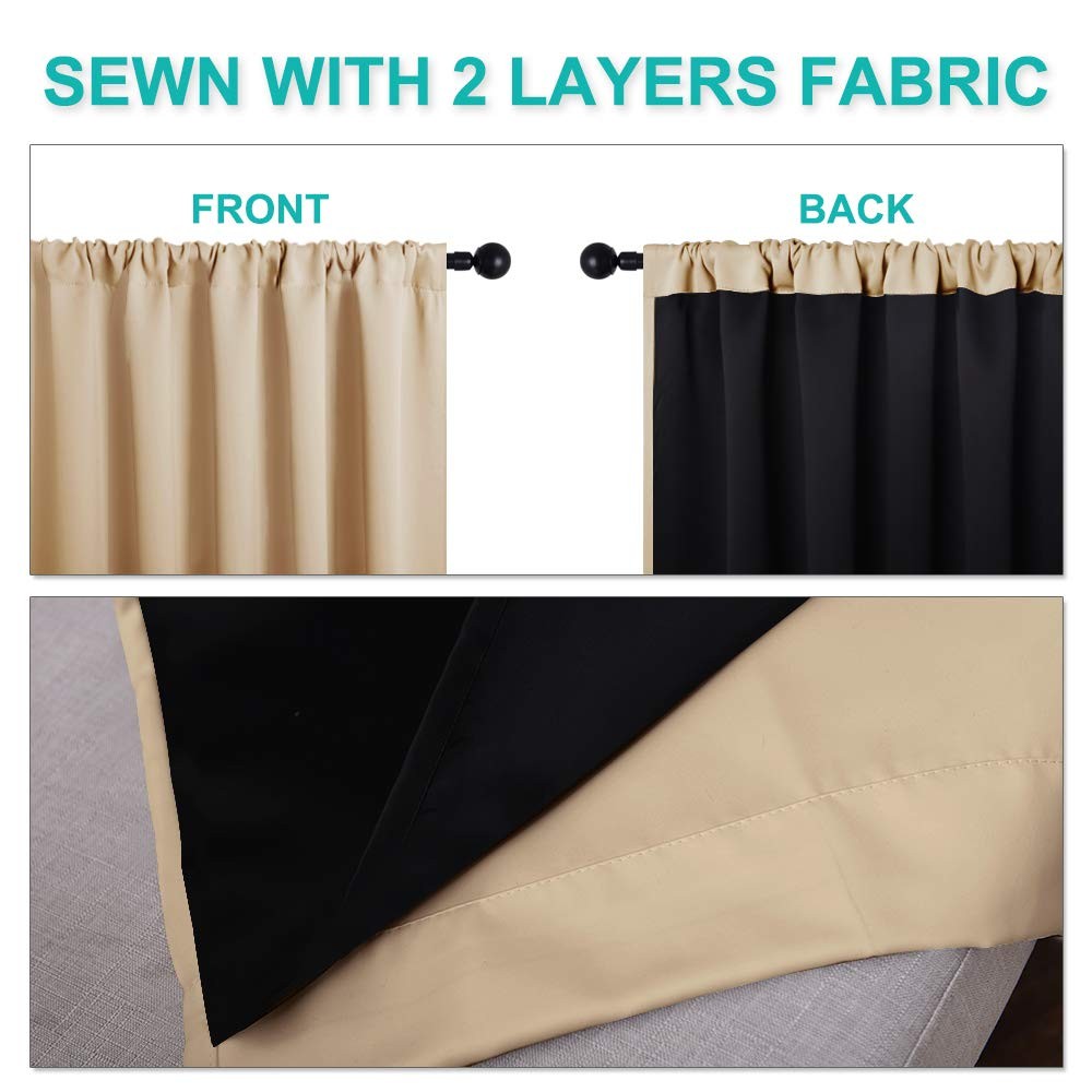 No matter where you live, California, Texas or even Florida, if you have the annoying sunshine of torture, and need a completely dark sleep environment, choose 100% blackout curtains. No matter how strong the unwanted light was, you can have a good sleep. Different from other regular one layer blackout curtains, 100% Blackout Lined Curtains with Rod Pocket go beyond that mundane function and provide the best benefits. FIT NICELY: Package includes 2 blackout drapes with black lining. 2.7" pockets are recommended with no greater than a 1.7" rod for maximum movement. Particularly suitable: living room, kitchen, bedroom, baby room, villa, hall, and department, etc. MULTIFUNCTION: Draperies are thick enough to blocks out unwanted light and noise, encouraging day sleepers and the ones who have trouble falling asleep have a good sleep. Not only that but also make your resting zone truly blissful. They would be perfect for any home theater and supply you with the enjoyment of watching TV in real darkness. The sophisticated designs allow you to brighten your home decor, making your living space more lively. Protect your furniture, floors, and artwork from the ravages of the sun. Lined Curtains have kept the room much warmer in winter and also block a lot of heat during summer, relieving the strain on home heating and cooling while reducing energy budget. TIPS: Don't worry if these curtains are a few shorter than your windows. You can hang these curtains with rings and hooks(These are not included). That could be adjustable for height max 3". Hooks space distance around 4-6 inches. Machine washable, recommended hand wash or dry cleaning. Wash the water temperature below 86℉. Advocate for the use of flexible detergents, no bleaching. Low-temperature ironing if necessary. Ready Made: 2 panels per package. Each Classic Lined Curtain measures 52" wide x 63" long (Total width is 104"). 2.7-inch rod pockets are recommended with no greater than a 1.7-inch rod for maximum movement. Create pleats easily, adding decorative style. 100% Blackout: Sew in black liner backing makes the drapes thick enough to completely keep out the 100% SUNLIGHT and UV RAY. The greatest benefit is to offer you a real dark environment, bringing you a good night's sleep during the day. Multiple Function: Heavyweight Blackout Lined Curtain Panels can be a good sense of drape, making the window completely closed, to achieve noise reduction. These soft and durable curtains feature high performance on thermal insulated, energy-saving and privacy protection. Adjustable Length: Don't worry if these curtains are a few shorter than your windows. You can hang these curtains with rings and hooks(Rings and hooks are not include). That could be adjustable for height max 3 inches. Hooks space distance around 4-6 inches. Easy Care: Good quality finishing will withstand years of use. Machine washable and Wash the water temperature below 86℉. Mild detergent no bleaching. Low-temperature ironing. Don’t use sharp things scratching curtains.