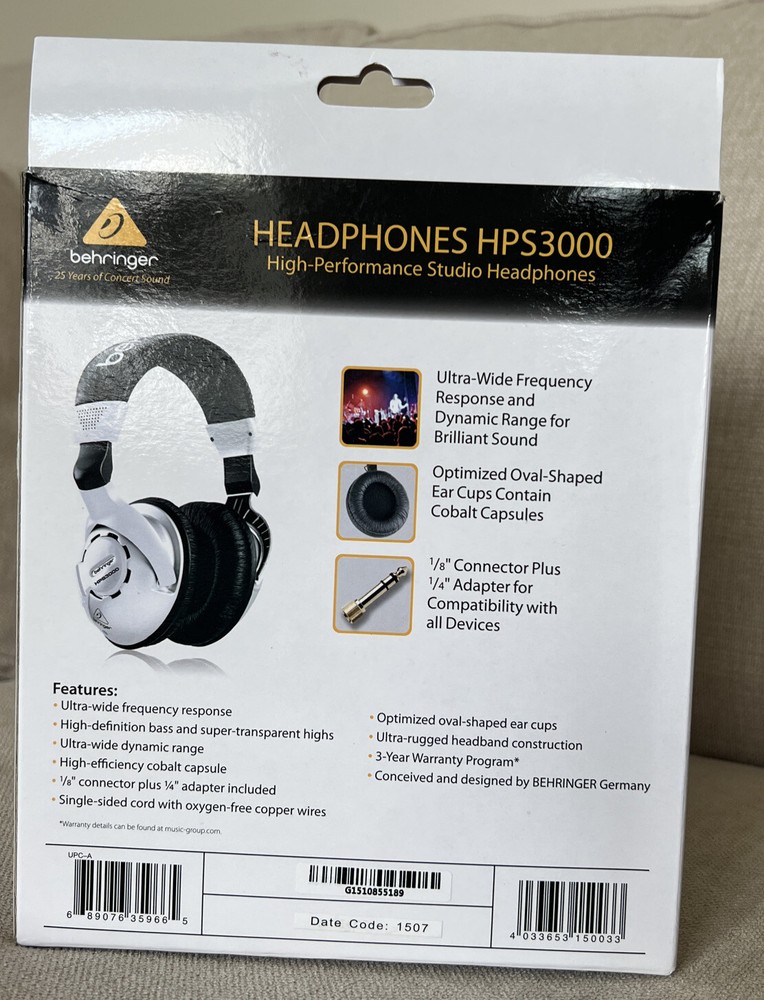 Behringer HPS3000 Silver Oval Shaped High Performance Studio Headphones....