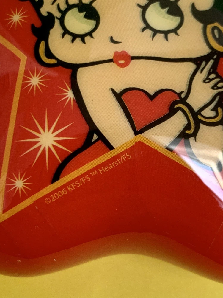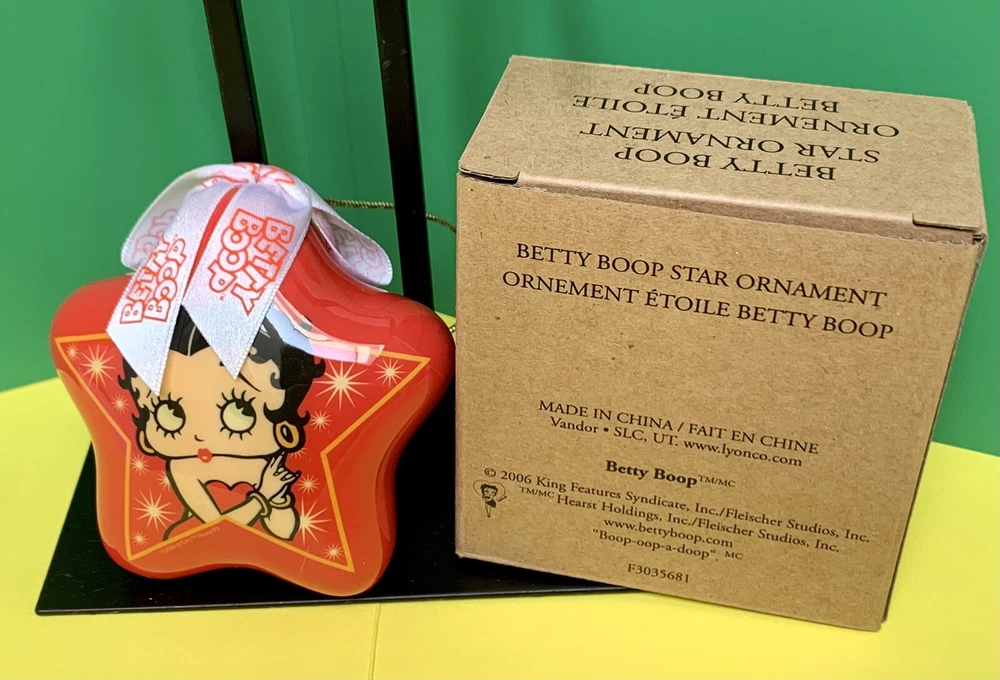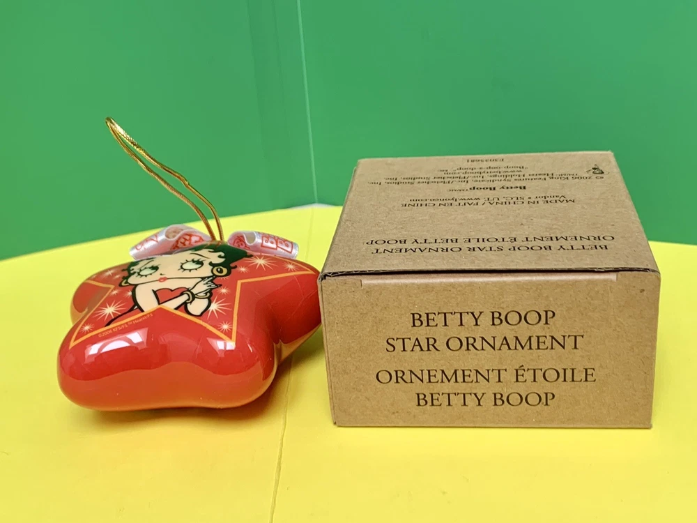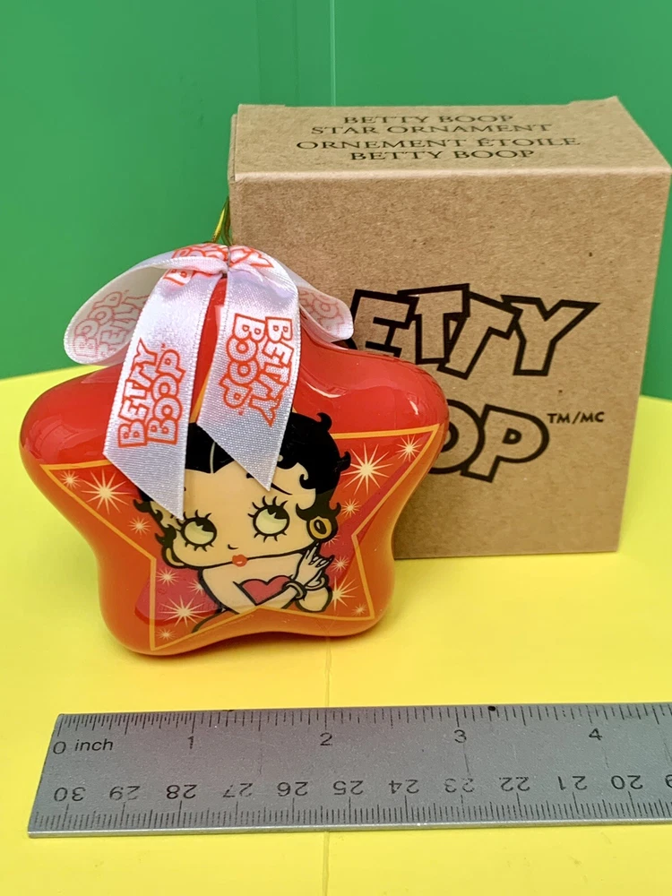 This whimsical Betty Boop ornament is a bright red star with a gorgeous picture of her inside a star. It’s got a little ribbon on top and a gold cord for hanging. It’s very light weight but stunning in appearance. It’s new in box and was only opened for this photo shoot. Please examine pictures closely and ask questions before bidding or buying. It’s handled same business day and shipped with USPS First Class Mail.