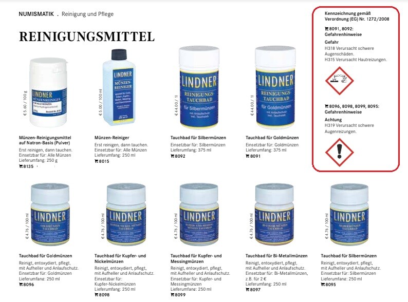 Lindner 8097 BI - metal diving baths - cleaning baths - coin cleaner - coin - cleaner 250 ml can Description: Lindner diving baths bimetall 250 ml Mint diving bath BI-Metall .... cleans, entho -oxydated, maintains with brightener and starting protection. After cleaning, the coins simply dive a few seconds, rinse with water and dry. With child locking. Note the instructions for use. system Lindner Suitable for: BI Metall coins - BI metal jewelry Filling quantity 250 ml material Diving bath Scope of delivery Diving bath in the plastic container Order no. 8097 Hazard notice: Fluid and steam easily flammable. Causes severe eye irritation. Can cause sleepiness and drowsiness. Ingredients: Demineralized water, industrial stirring, alcohol, fragrance lemon. Article no. 8097 Available at 5 types of silver 8095 - gold 8091 - copper measurement 8099 - BI Metal 8097 - copper nickel 8098 Seihe Image 2. Good & Cheap & Reliable Images are patterns shown decoration & coins & stamps & extras are not included in the scope of delivery .. Set with BI - metal diving baths - cleaning baths - coin cleaner - coin - cleaner Description: Lindner diving baths bimetall 250 ml .... cleans, entho -oxydated, maintains with brightener and starting protection. After cleaning, the coins simply dive a few seconds, rinse with water and dry. With child locking. Note the instructions for use. Diving bath in the plastic container Hazard notice: Fluid and steam easily flammable. Causes severe eye irritation. Can cause sleepiness and drowsiness. Ingredients: Demineralized water, industrial stirring, alcohol, fragrance lemon. Available at 5 types of silver 8095 - gold 8091 - copper measurement 8099 - BI Metal 8097 - copper nickel 8098 Seihe Image 2. Images are patterns shown decoration & coins & stamps & extras are not included in the scope of delivery..