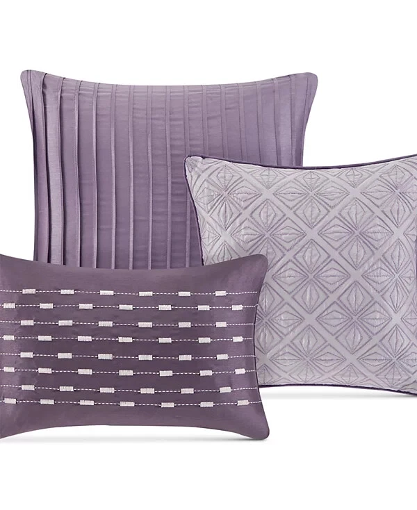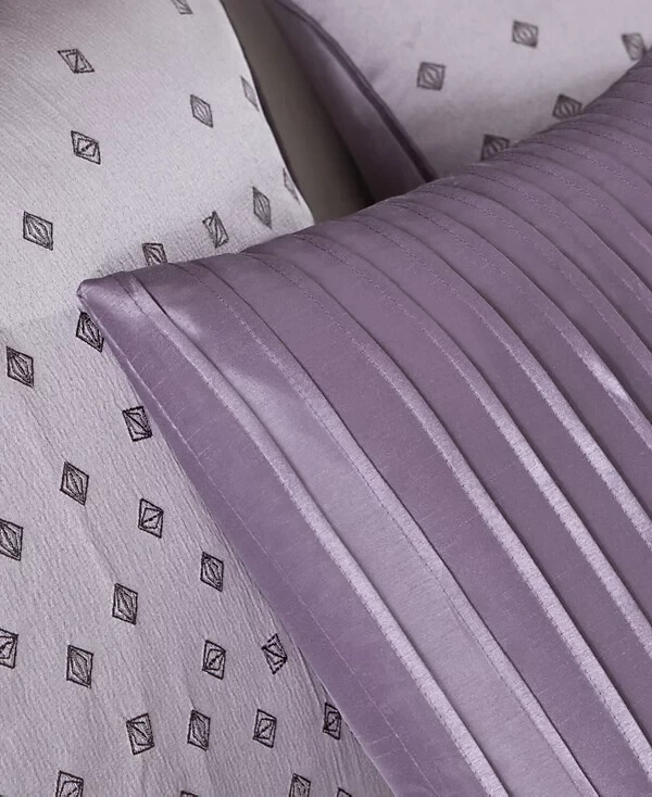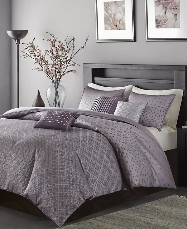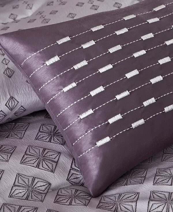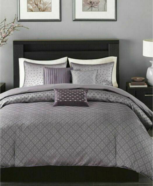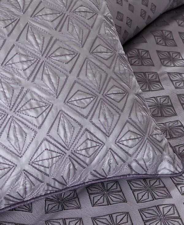 To update your space to a modern look, try the Biloxi Collection. Made from polyester jacquard, this unique design is woven to look like sequins. The design has an ombre affect looking heavy in the center of the bed and spreading out towards the top and bottom of the duvet cover. Two matching shams share this ombre design. Three decorative pillows use unique embroidery and fabric manipulation for the perfect new look for your space. To update your space to a modern look, try the Biloxi CollectionMade from polyester jacquard, this unique design is woven to look like sequinsThe design has an ombre affect looking heavy in the center of the bed and spreading out towards the top and bottom of the duvet coverTwo matching shams share this ombre designThree decorative pillows use unique embroidery and fabric manipulation for the perfect new look for your space. Set Include:1 Duvet Cover:90x90 2 Standard Shams:20x26(2) 3 Decorative Pillows:18x18/16x16/12x18 Material Details: Duvet Cover/Sham: 100% polyester jacquard, 100% brushed polyester reverse Pillows: 100% polyester shell, polyester filling Three decorative pillows use unique embroidery and fabric manipulation for the perfect new look for your space Two matching shams share this ombre design
