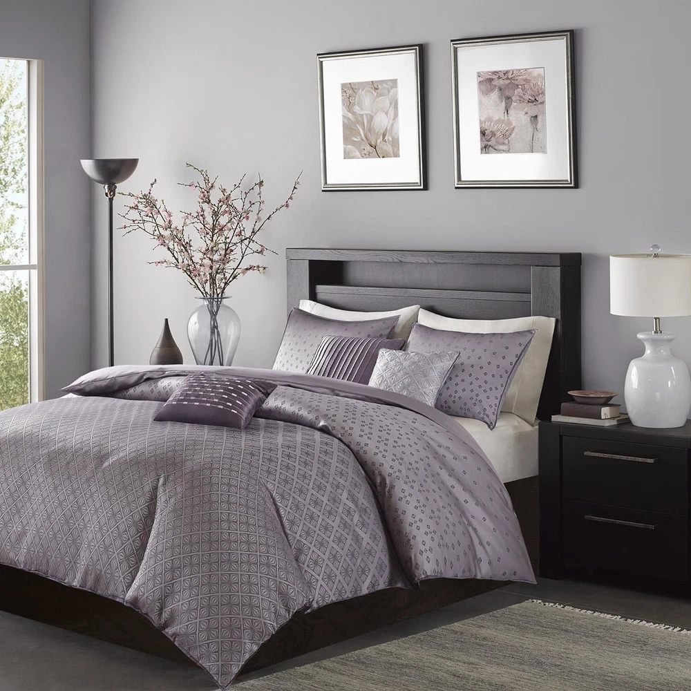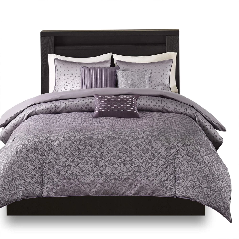 Menu Other Items Feedbacks About Us Contact Us Add To Favorites Biloxi Duvet Cover - Geometric Duvet Cover Set, Ultra Soft Microfiber Light Weight Bed Comforter Covers, Full/Queen(90"X90"), Purple 6 Piece 100% Polyester Jacquard To update your space to a modern look, try the Madison Park Biloxi CollectionMade from polyester jacquard, this unique design is woven to look like sequinsThe design has an ombre affect looking heavy in the center of the bed and spreading out towards the top and bottom of the duvet coverTwo matching shams share this ombre designThree decorative pillows use unique embroidery and fabric manipulation for the perfect new look for your space. Set Include:1 Duvet Cover:90x90 2 Standard Shams:20x26(2) 3 Decorative Pillows:18x18/16x16/12x18 Material Details: Duvet Cover/Sham: 100% polyester jacquard, 100% brushed polyester reverse Pillows: 100% polyester shell, polyester filling Three decorative pillows use unique embroidery and fabric manipulation for the perfect new look for your space Two matching shams share this ombre design To update your space to a modern look, try the Madison Park Biloxi Collection. Made from polyester jacquard, this unique design is woven to look like sequins. The design has an ombre affect looking heavy in the center of the bed and spreading out towards the top and bottom of the duvet cover. Two matching shams share this ombre design. Three decorative pillows use unique embroidery and fabric manipulation for the perfect new look for your space. Item Specification Item model number MP12-3053 Global Trade Identification Number 00675716784102 Style Modern Color Biloxi Geometric Purple Pattern Geometric Fabric Type 100% Polyester Jacquard Material Polyester Country of Origin China Item Weight 7.85 pounds Batteries required No Theme Ombre,Geometric,Modern Size Queen (90 in x 90 in) Seasons All Refill polyester Number of Pieces 6 Is Discontinued By Manufacturer No Product Dimensions 90 x 90 x 0.13 inches Product Care Instructions Machine Wash Included Components Pillow Sham, Duvet Cover Dimensions Shipping Returns Additional Info Product Dimensions: 90.0 inches x 90.0 inches x 0.13 inches. Weight: 7.85 lb Fast shipping is very important for us. Our standard shipping service is FREE. Your order will be shipped within 1-3 business days upon full payment received. Most items are delivered within 3-5 business days, however, please allow 3-10 business days. We are shipping only to USA. We only ship to the confirmed Paypal address. We reserve the right to cancel any order for any reason at any time. We are not responsible for undeliverable addresses. We offer a 30 day return policy from checkout winning date. Your satisfaction is guaranteed! If for any reason you are unhappy with your item, just return it within 30 days for a full refund, minus shipping cost. Please contact us prior to initiating a return so that we can issue you a refund authorization. Items defective upon receipt must be packaged in their retail packaging as if new and returned with a detailed description of the problem. Return shipping fees are not refundable. We reserve the right to decline any returns if the above guidelines are not followed. All of our items, unless otherwise stated, will only run on 120 volts. Please check to make sure your country complies with these specifications. If you have a problem or question regarding your transaction please contact us before leaving any type of feedback. We will work with you to resolve any problem you may have.