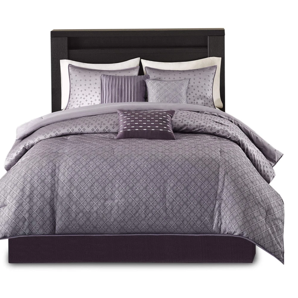 To update your space to a modern look, try the Biloxi Collection. Made from polyester jacquard, this unique design is woven to look like sequins. The design has an ombre affect looking heavy in the center of the bed and spreading out towards the top and bottom of the comforter. Two matching shams share this ombre design. Three decorative pillows use unique embroidery and fabric manipulation for the perfect new look for your space. Items in the set may come in a rolled or compressed packaging, which will need to be fluffed up or steam ironed before use to remove wrinkles. To update your space to a modern look, try the Biloxi Collection. The design has an ombre affect looking heavy in the center of the bed and spreading out towards the top and bottom of the comforter. Faux silk jacquard is not only giving a natural sheen finish, but also wrinkle resistant and colorfast. Set includes: 1 Comforter: 90"W x 90"L, 1 Bed Skirt: 60"W x 80"L + 15"D, 2 Standard Shams: 20"W x 26"L, 3 Decorative Pillows: 18"W x 18"L/16"W x 16"L/12"W x 18"L Care instructions: Machine wash cold, gentle cycle, and separately. Do not bleach. Tumble dry low, remove promptly. Do not iron. If there is no free movement in the washer or dryer, use large capacity commercial washer/dryer.