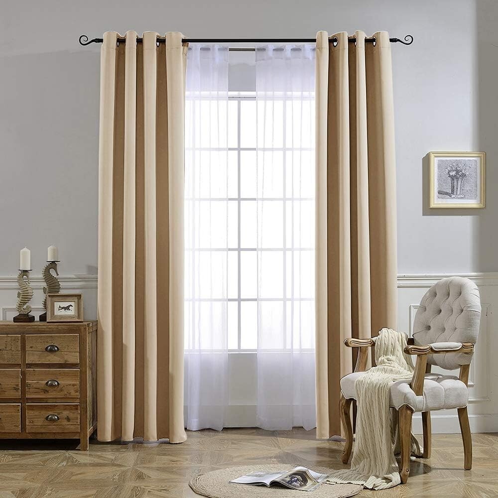 NICETOWN Biscotti Beige Blackout Curtains 84 inches Long for Bedroom - Thermal Insulated Solid Grommet Room Darkening Window Treatments Sound Reducing for Living Room (2 Panels, W52 x L84) - Like New Enhance your room's ambiance with NICETOWN's Biscotti Beige Blackout Curtains, offering a blend of functionality and style. Measuring 52 inches wide and 84 inches long, these thermal insulated drapes are perfect for any bedroom setting, designed to provide privacy and block out unwanted light effectively. The country rustic style, coupled with a solid pattern, brings a touch of warmth to your living space. Crafted from 100% polyester fabric, these curtains are both antibacterial treated and easy to maintain, requiring just a mild detergent for cleaning. They come as a pack of two, featuring grommet tops for easy hanging on any standard rod. Additionally, the curtains are unscented, ensuring a pleasant and undisturbed environment all year round. Item Details 100% Polyester Elegant Design: 2 panels per package. Each Blackout Curtain measures 52" wide x 84" long. The design of silver grommet (1.6-inch inner diameter) creates casual elegance for your house, which makes the curtains easy to install and slide. Amazing Material: Super heavy and soft Blackout Curtain Panels are very upmarket. Besides, 85%-99% light blocking, thermal insulated, soundproof, and energy-efficient. Thread trimmed and wrinkle-free, both sides are the same color. Good Performance: Protect your furniture and floor exposed to the sun, while still helping you on heating and cooling your home. Privacy protection. The greatest benefit is to bring you a good night's sleep, making you full of energy every day. Wide Compatibility: Don't bother looking for sheer curtains to match, choosing different styles of voile curtains with white color in the NICETOWN store. Such curtain sets provide a more permanent harmonious window dressing, making your home lively. Easy Care: Good quality finishing will withstand years of use. Machine washable and Wash the water temperature below 86℉. Mild detergent no bleaching. Low-temperature ironing. Don’t use sharp things scratching curtains.