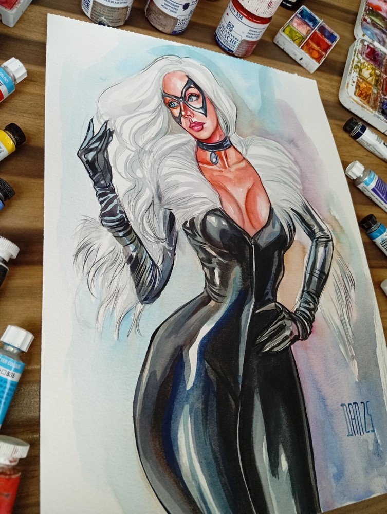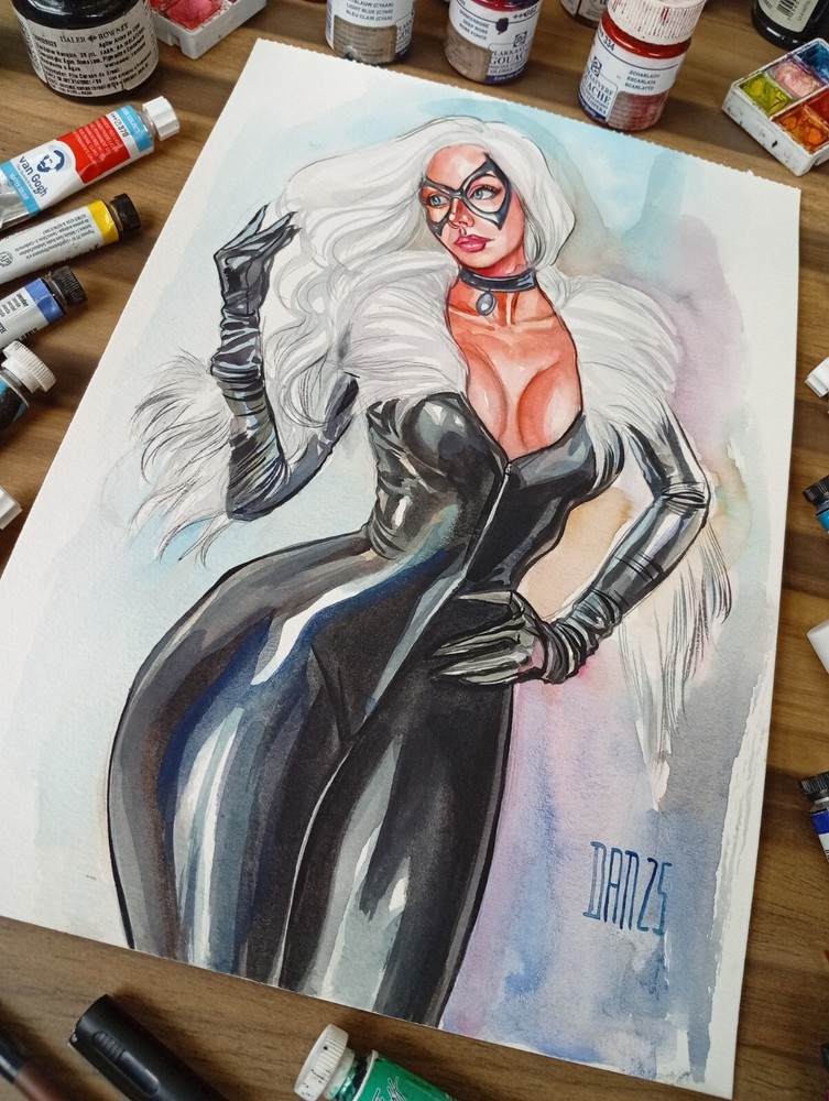 Black Cat 9x12 Original Comic Art by Dan Wade - TramaStudio