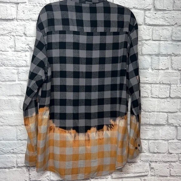 This flannel shirt is amazing—soft, stylish, and the perfect grunge-inspired fit! The black and gray buffalo plaid with the dip-dye effect gives it such a cool, edgy vibe. Super comfortable with generous sizing, just as described. Arrived fresh, never worn, and shipping was fast. Absolute steal for the price, love it!