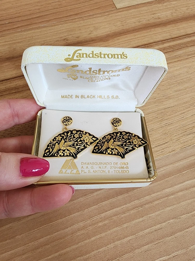 Absolutely stunning earrings! The delicate fan shape with intricate bird and flower details makes them so elegant. The black and gold contrast is gorgeous, and they’re lightweight yet durable. Perfect for adding a touch of class to any outfit—love them!